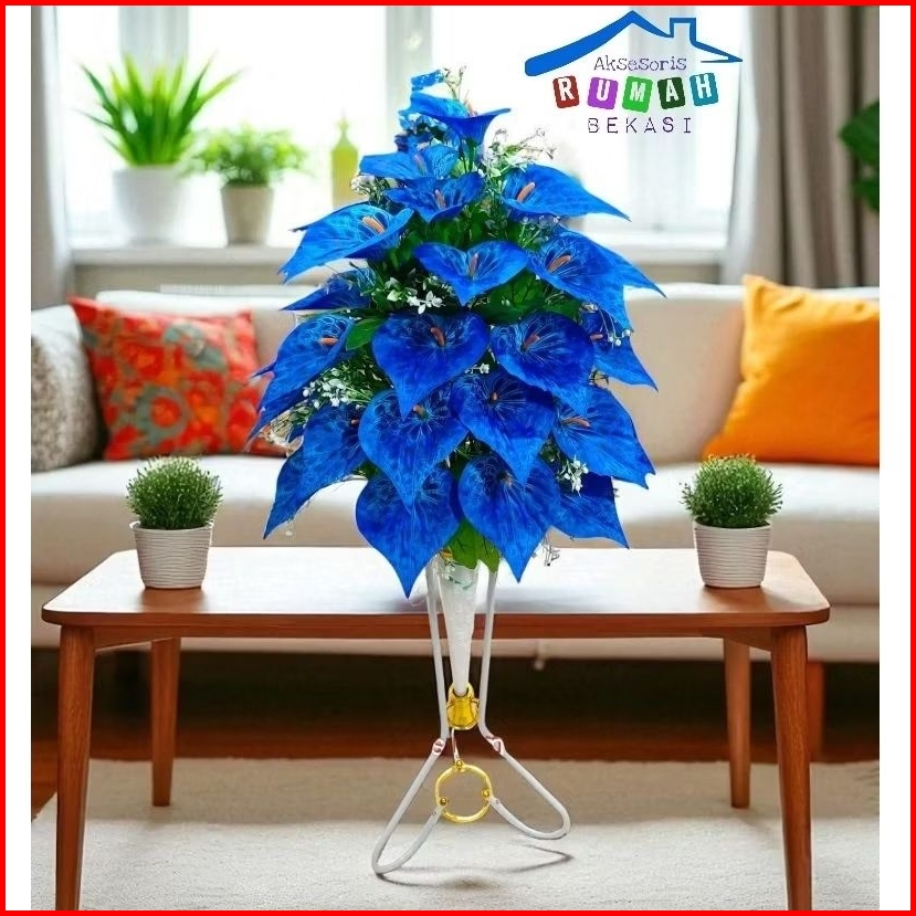 Bunga Aron Panda Artificial 18 Kuntum Dengan Pot Standing Besi