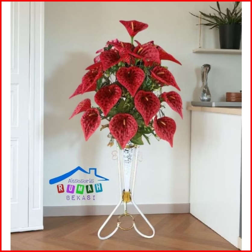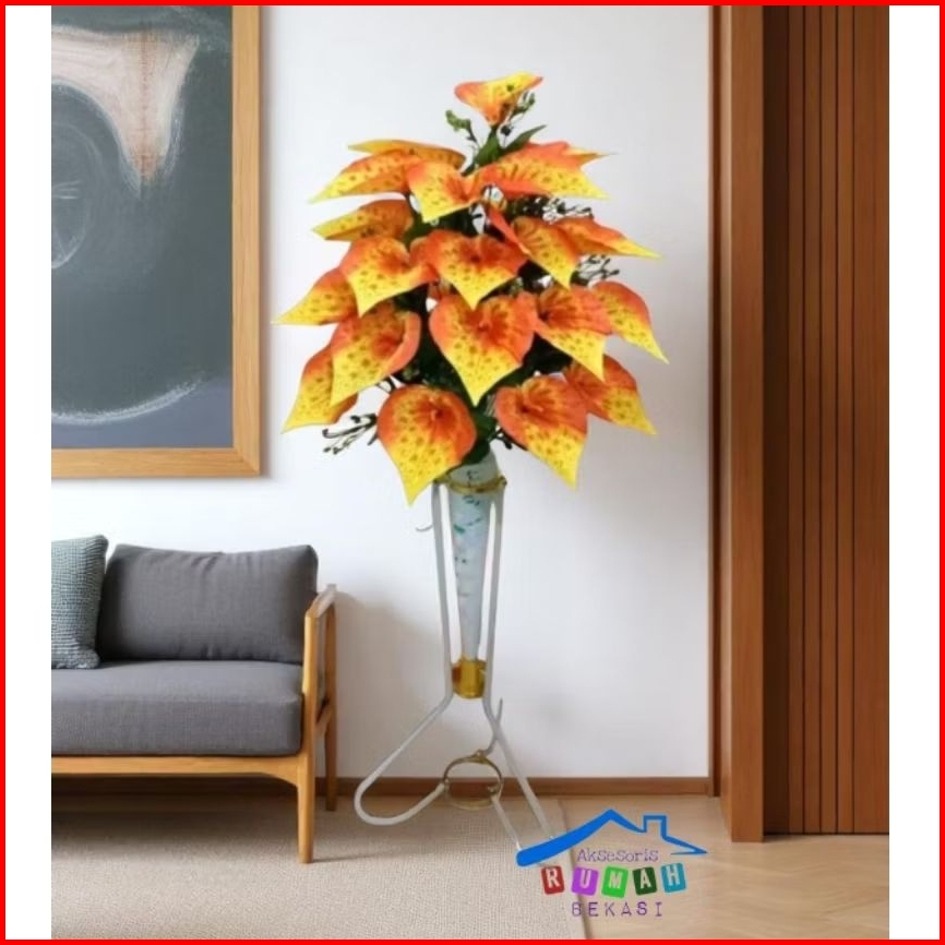 Bunga Aron Panda Artificial 18 Kuntum Dengan Pot Standing Besi