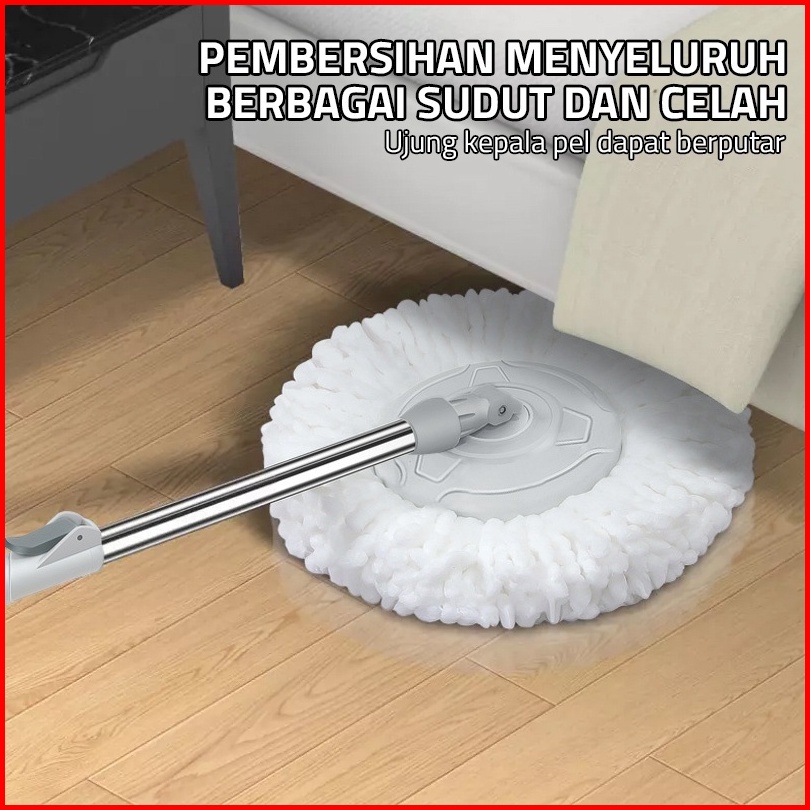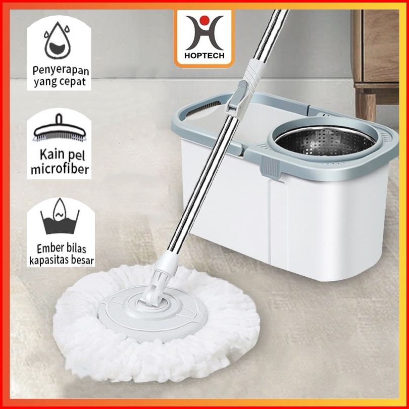Hoptech - Set Alat Pel Lantai Stainless 360 Ember Spin 2in1 Dengan Hand Pressure Pembuang Air