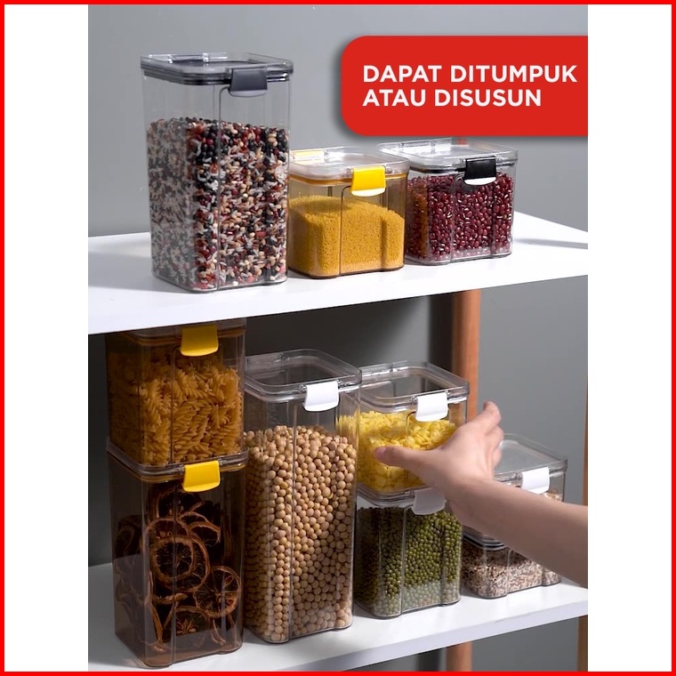 Hoptech - Toples Snack Kedap Udara Bening Kontainer Makanan Cereal Food Storage Jar 1800ml