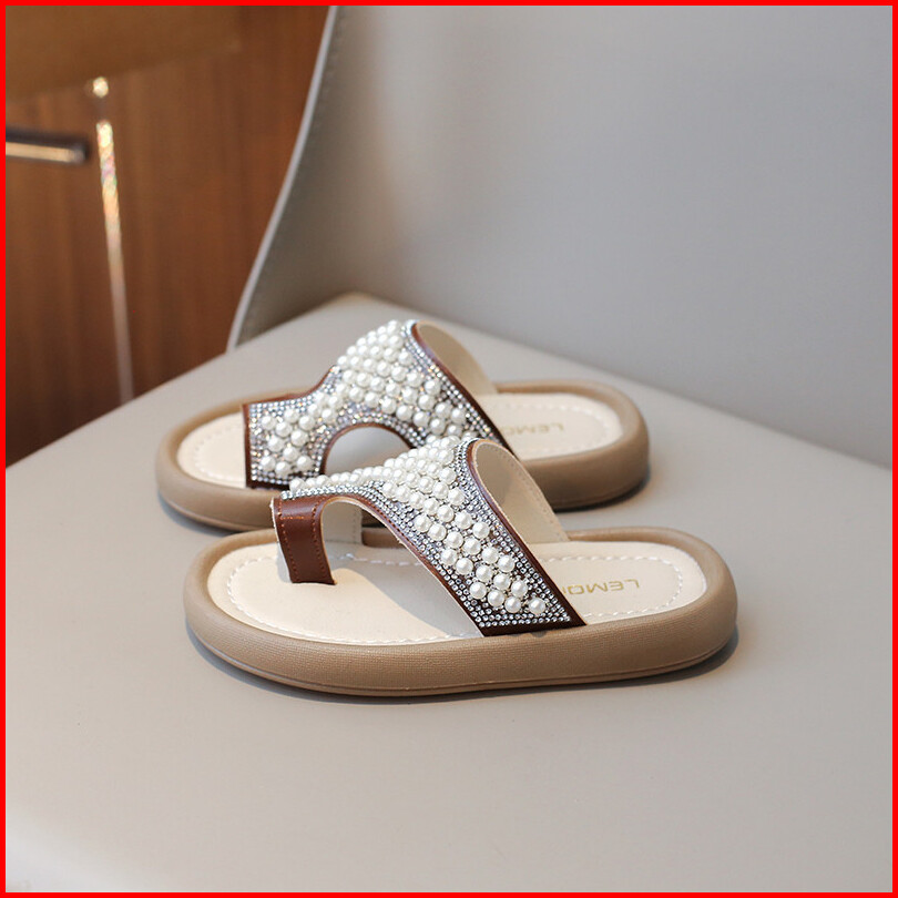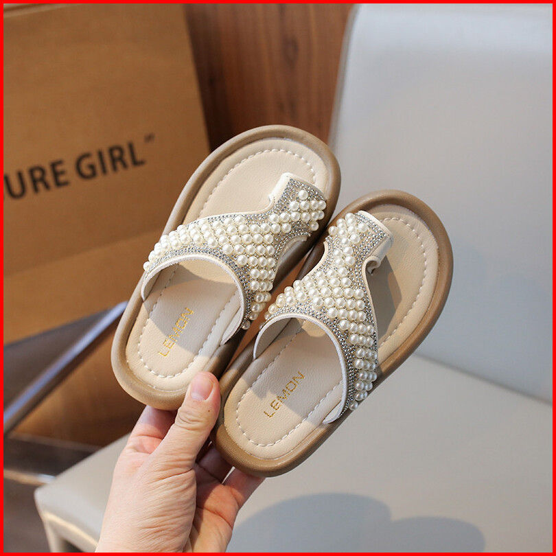 Sandal Kulit Berlian Imitasi Mutiara Bersinar Untuk Bayi Perempuan Sepatu Anak Sol Lembut Santai Ujung Terbuka Trendi Us