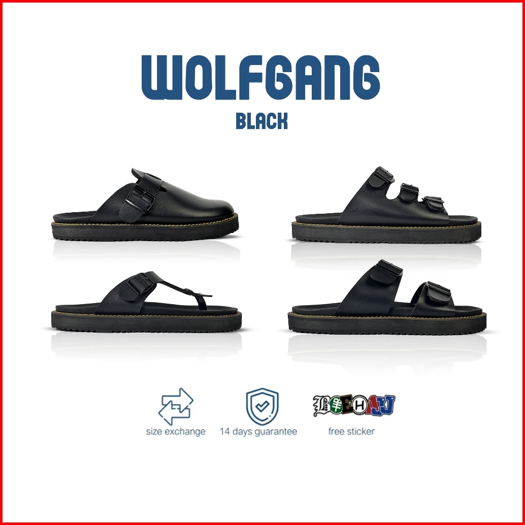 Boehajj Sandal Kulit Pria Wanita - Wolfgang Series Black