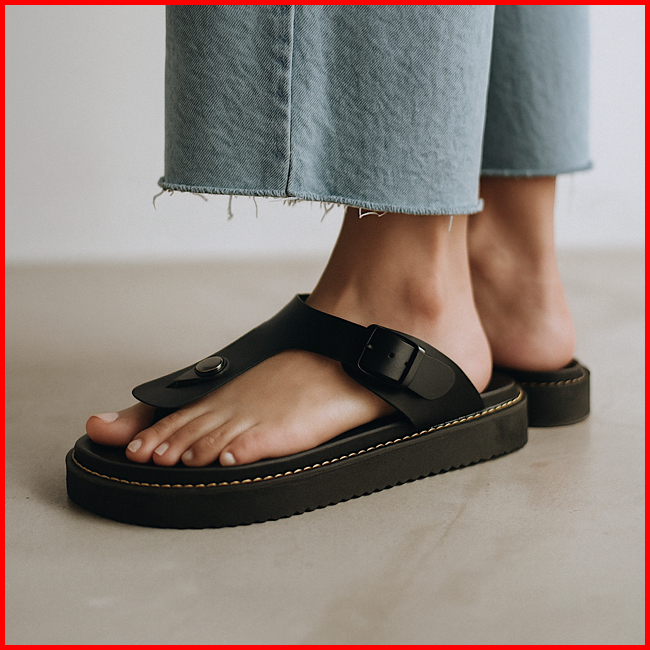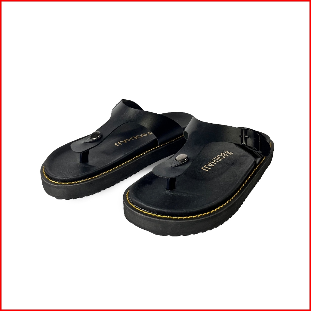 Boehajj Finn Black - Sandal Jepit Kulit Pria Wanita