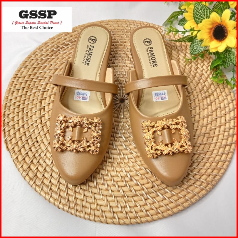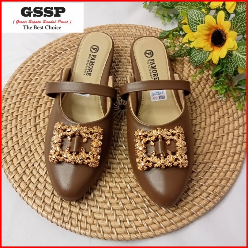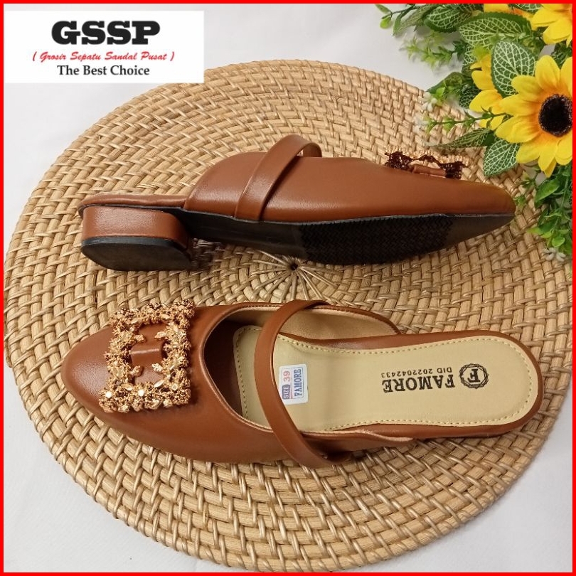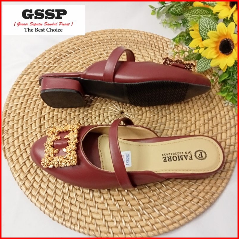 Sandal Wanita Hak 3 Cm Sendal Mules Wanita Pansus Regina Size 36-40