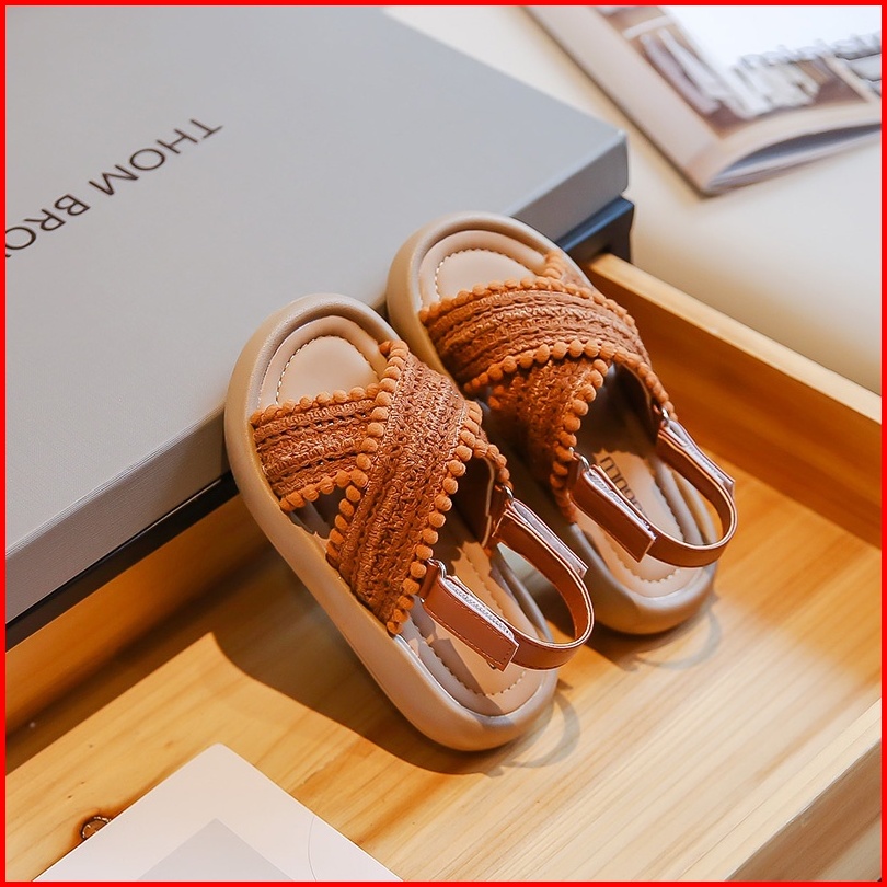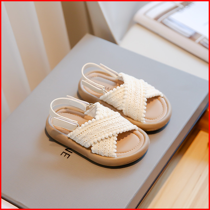 2 Cara Pakai Sandal Slip-on Bayi Perempuan Manis Warna Polos Sandal Renda Sol Lembut Sepatu Anak Nyaman 2-18 Tahun
