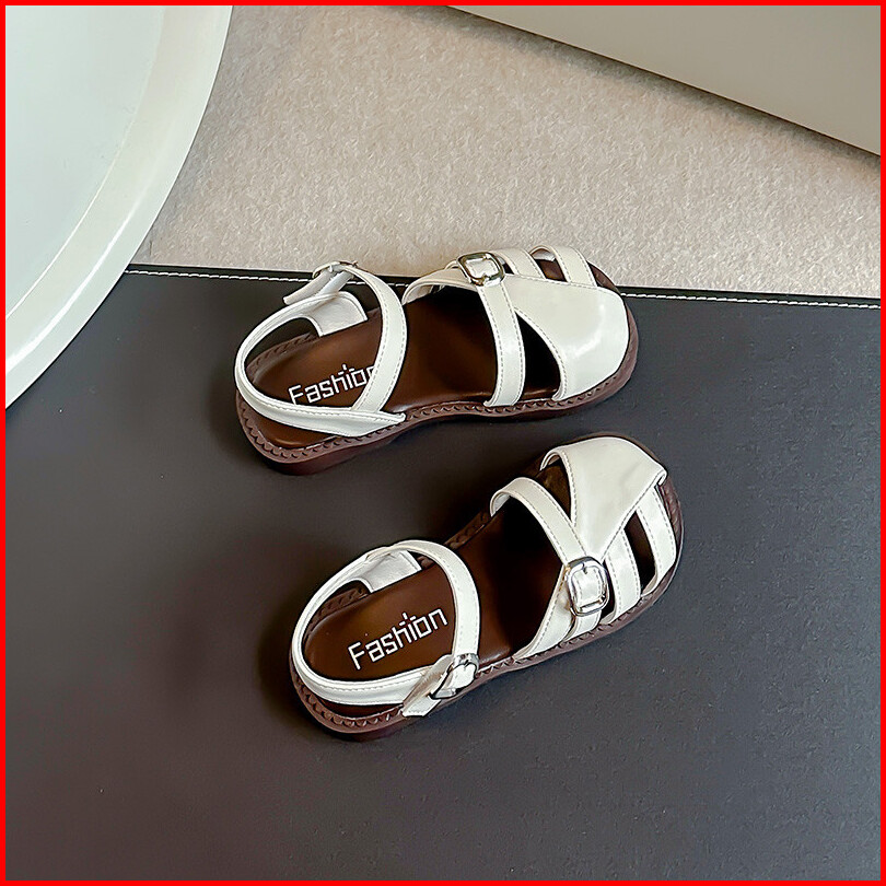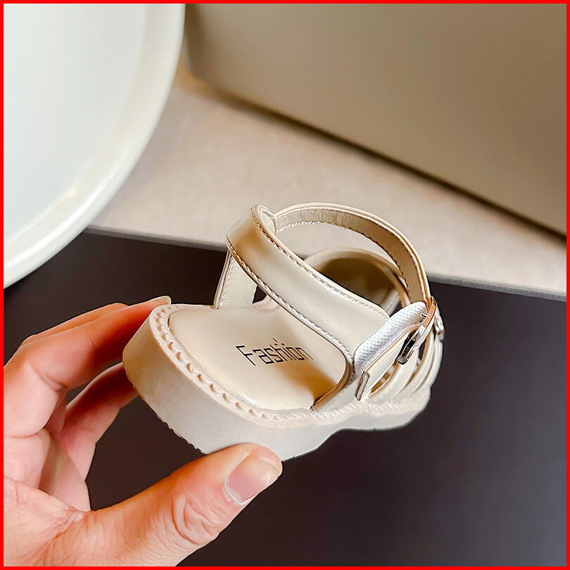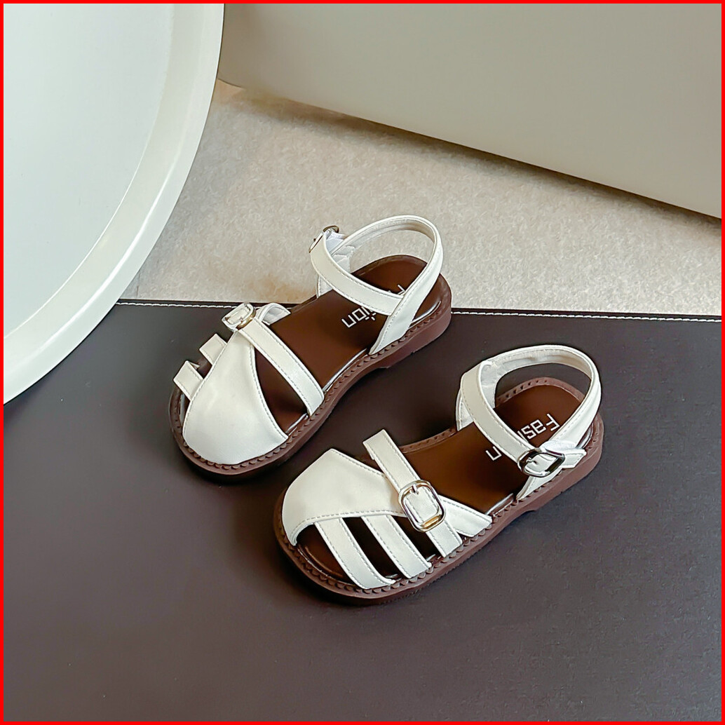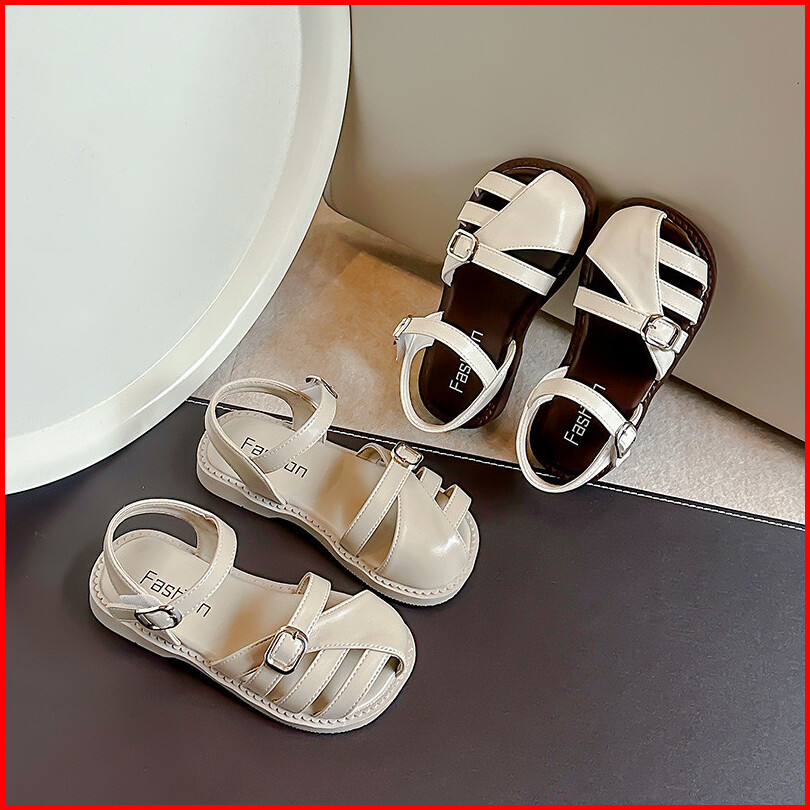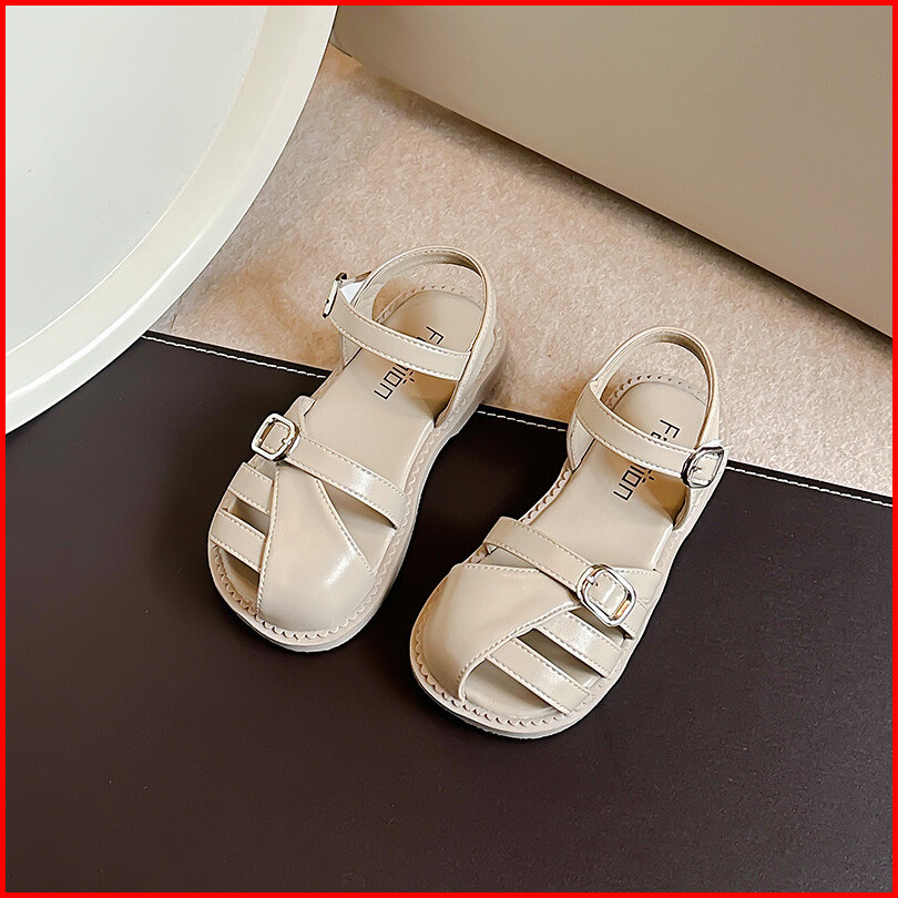 Sandal Kulit Bayi Perempuan Sederhana Bergaya Sepatu Anak Anti Tabrakan Sol Lembut Warna Polos Antik Ukuran 23-36