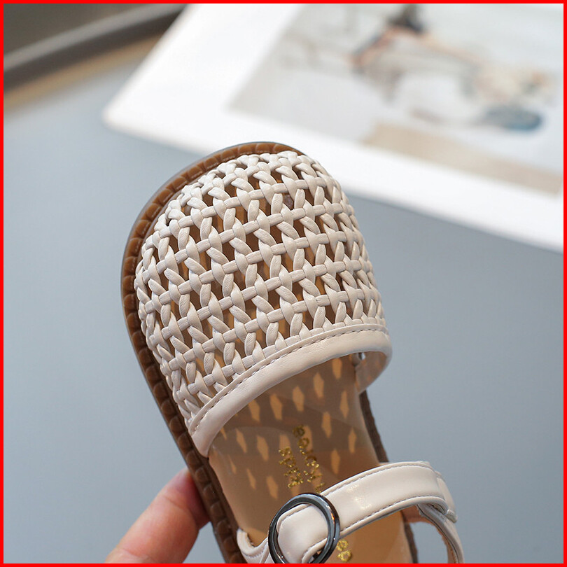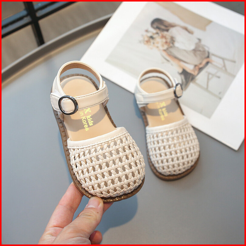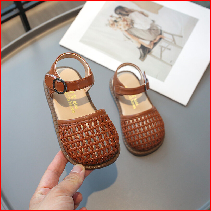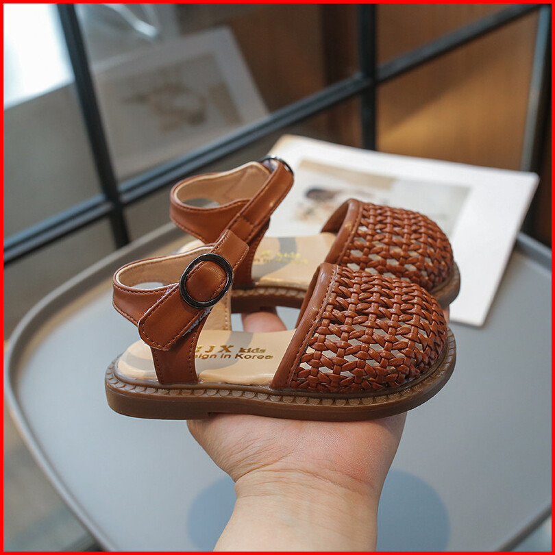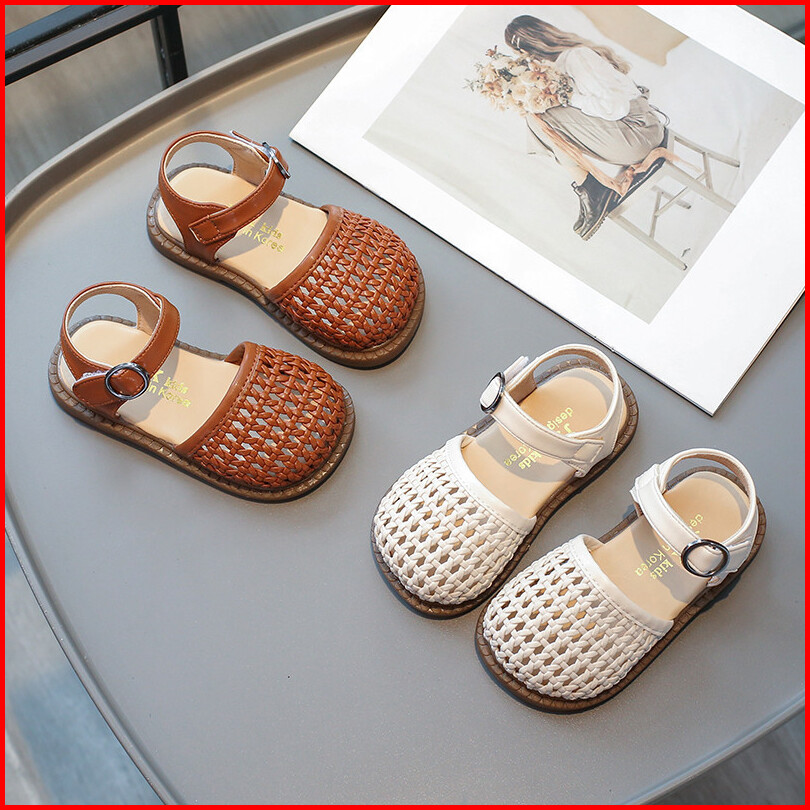 Sandal Kulit Tenun Warna Solid Untuk Bayi Perempuan Sepatu Anak Sol Lembut Anti Tabrakan Sederhana Cantik Ukuran 21-30