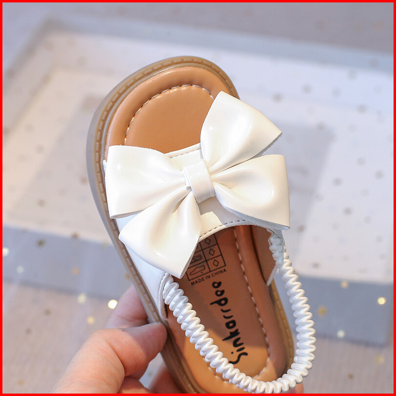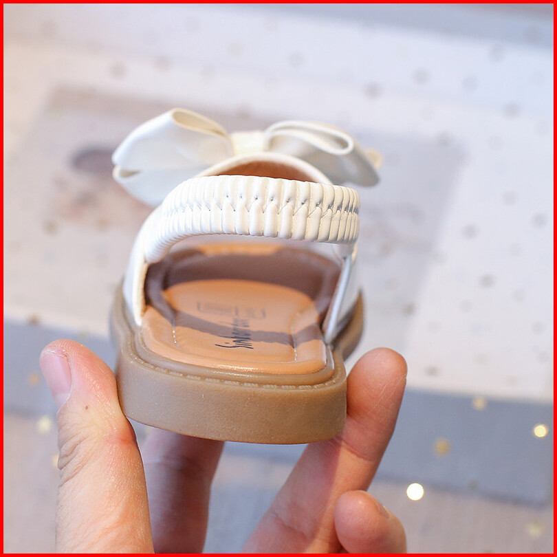 Sandal Kulit Slip-on Trendi Ujung Terbuka Untuk Bayi Perempuan Sepatu Anak Anti Licin Sol Lembut Motif Pita Vintage Ukur