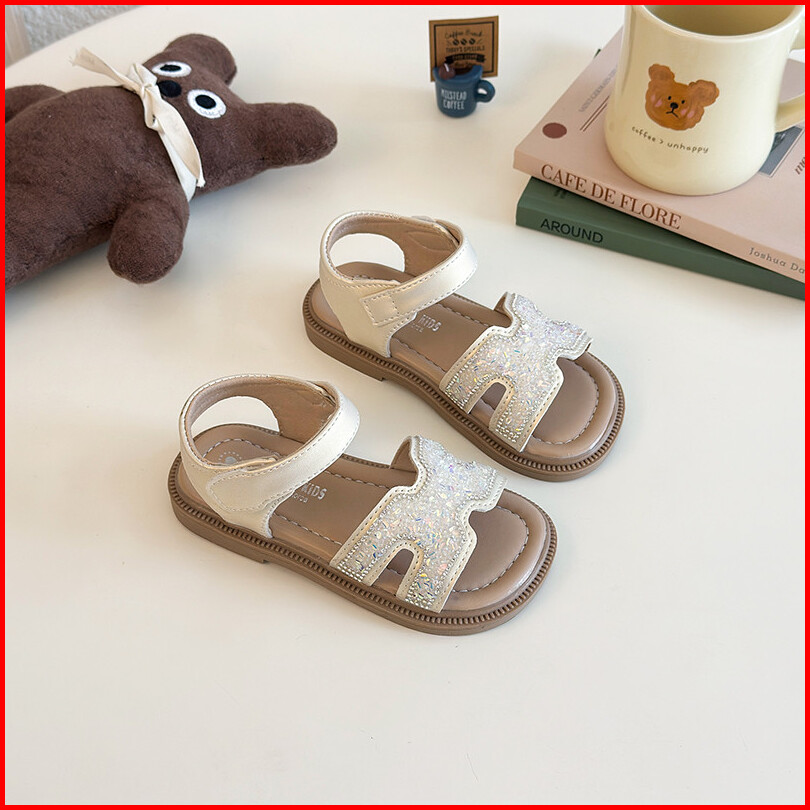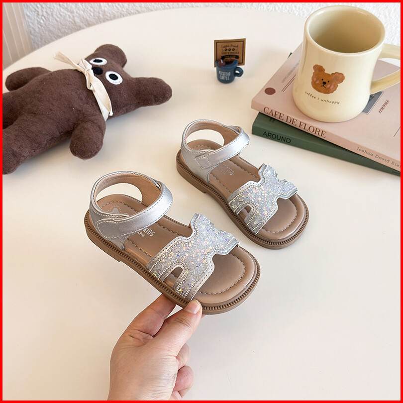 Sandal Kulit Ujung Terbuka Trendi Musim Panas Untuk Bayi Perempuan Berkilau Berlian Imitasi Antiselip Sol Lembut Sepatu
