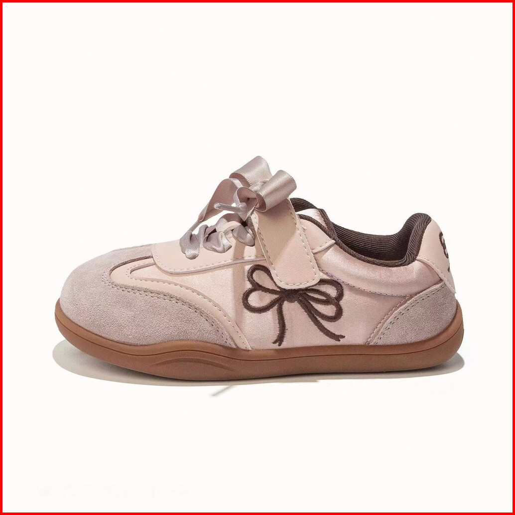 Sepatu Kets Kulit Matte Motif Pita Bordir Untuk Bayi Perempuan Sepatu Olahraga Kasual Anak-anak Yang Trendi Dan Serbagun