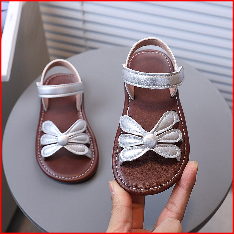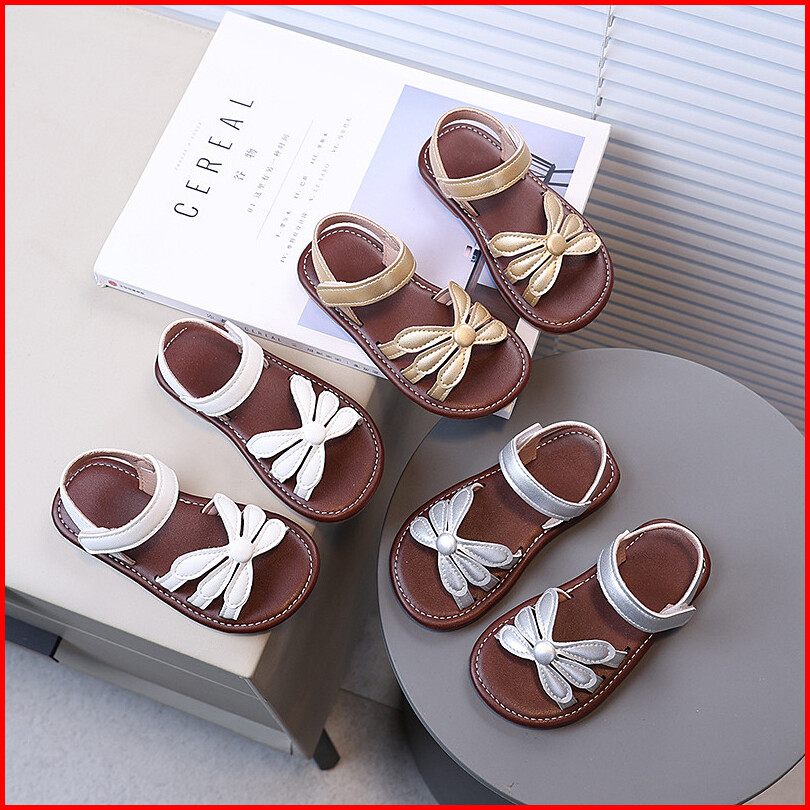 Sandal Kulit Anak Perempuan Bayi Sederhana Dan Modis Ujung Terbuka Motif Kupu-kupu Vintage Sol Lembut Antiselip Ukuran 2
