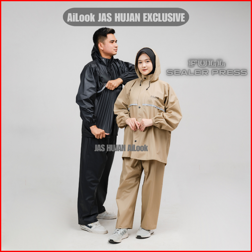 Ailook Jas Hujan Raincoat Full Seal Press Anti Rembes Pria Wanita Bahan Pvc Karet Tebal Kuat Elastis