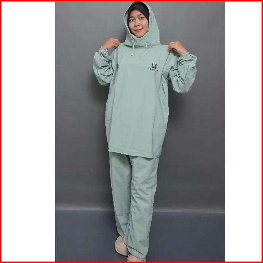 Jas Hujan Setelan Hoodie Bahan Pvc Tebal Elastis.