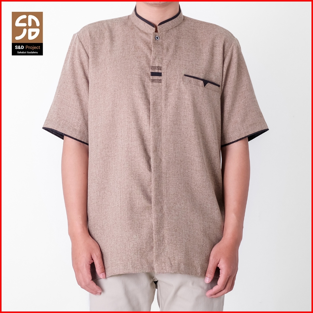 S D Project Baju Koko Muslim Bahan Madinah Warna Cokelat Jumbo M-4xl Untuk Pria Dewasa Lengan Pendek