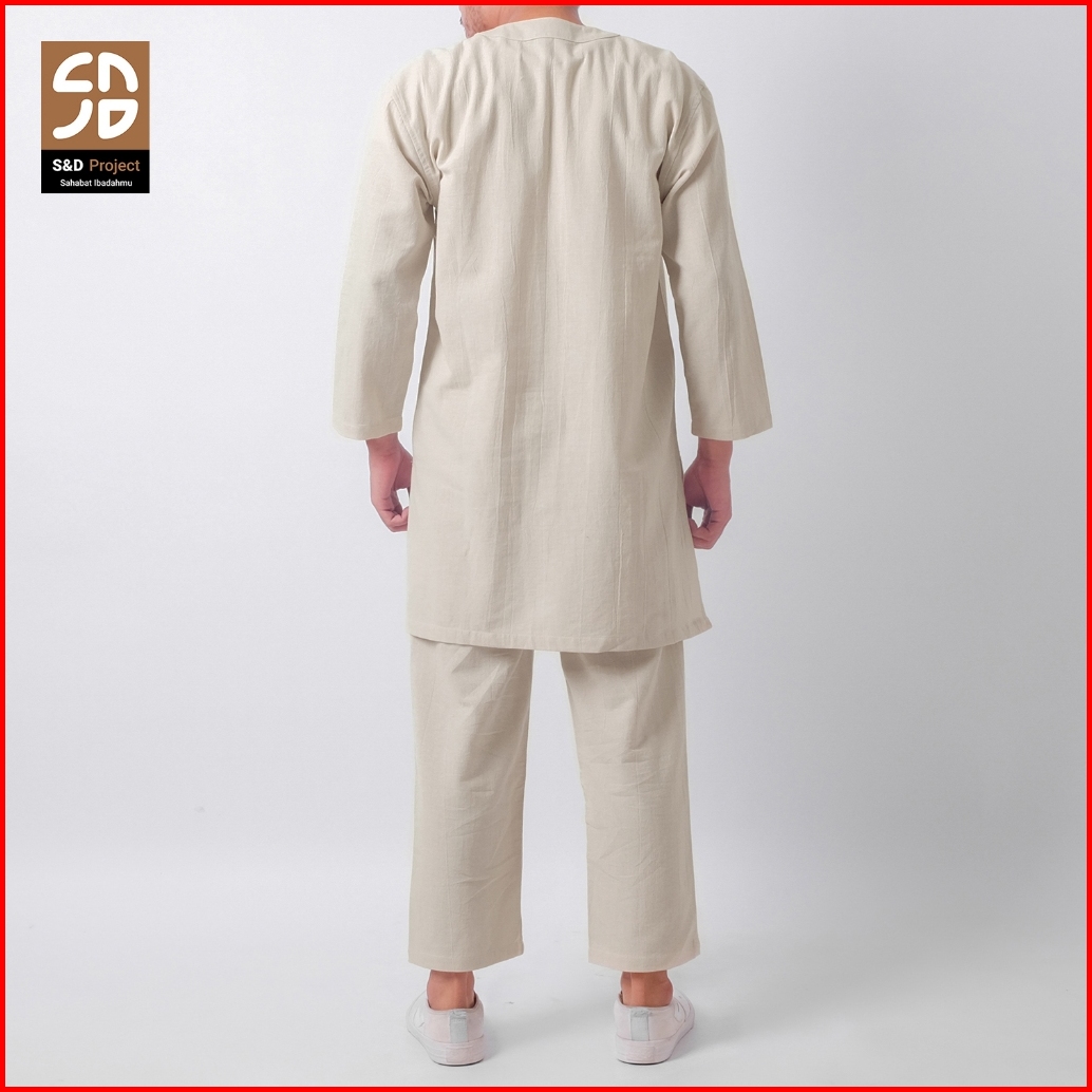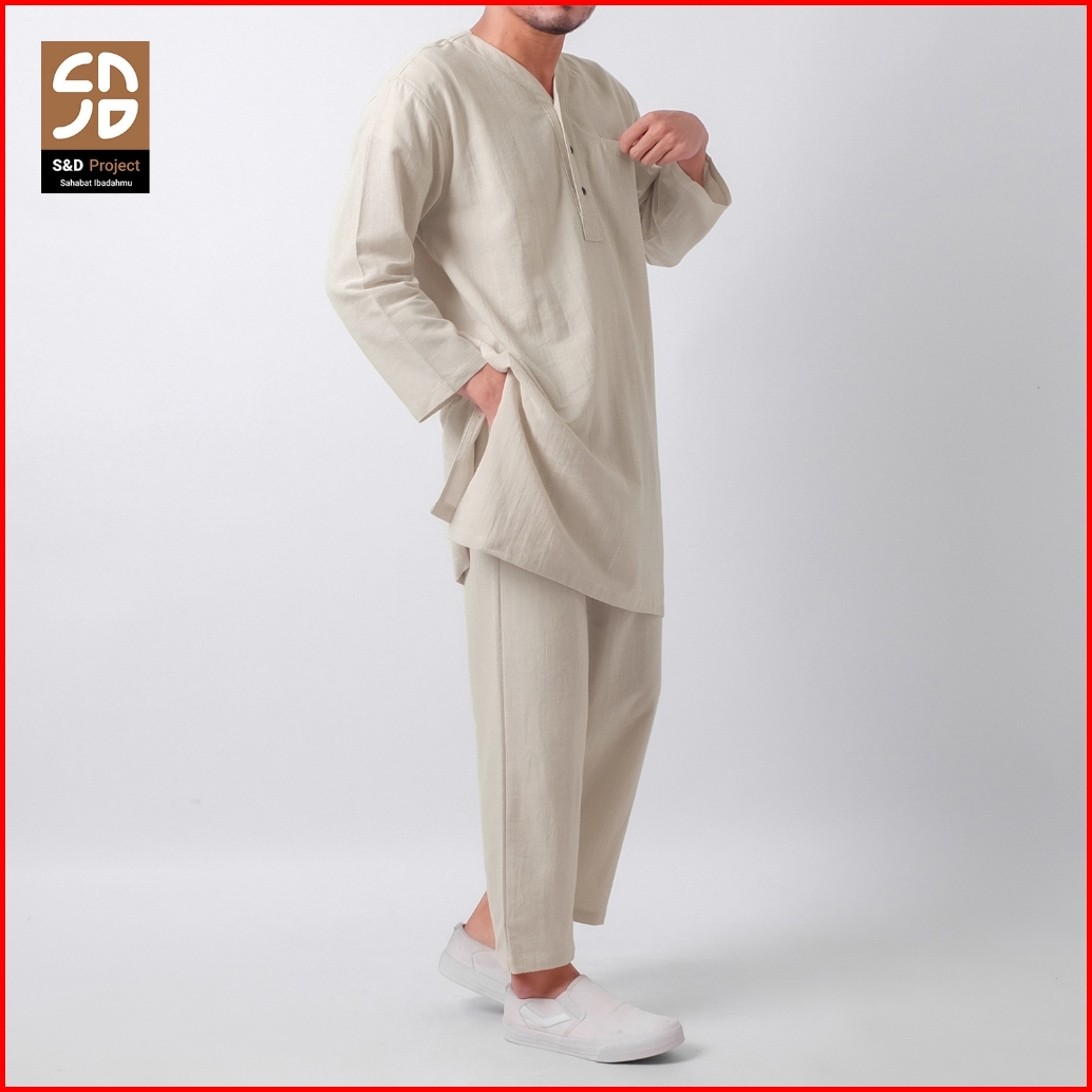 S D Project Setelan Baju Muslim Layyan Bahan Linen Premium Warna Ivory Atasan Kurta Dan Bawahan Celana M-xl Untuk Pria D