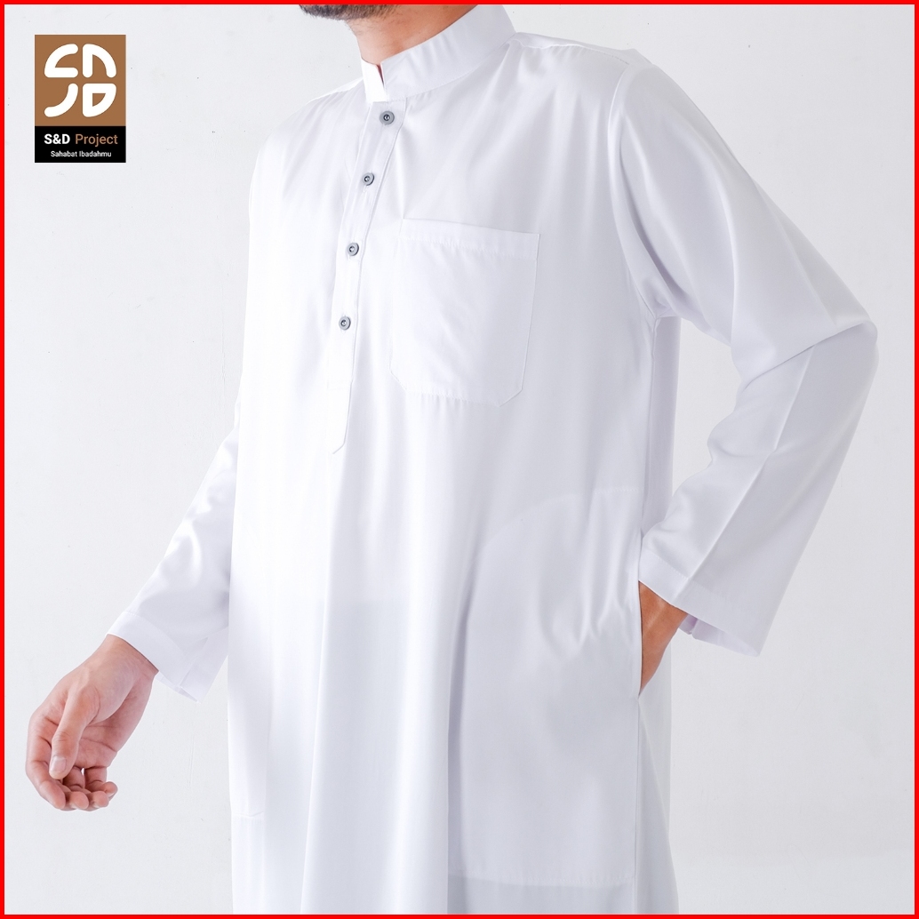 S D Project Baju Gamis Jubah Muslim Bahan Katun Tesla Warna Putih M-xl Untuk Pria Dewasa Lengan Panjang