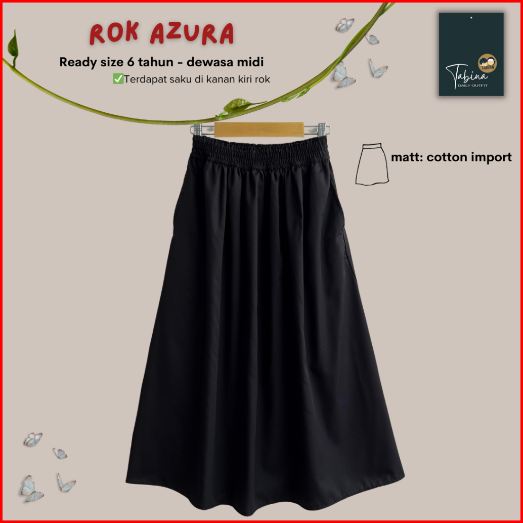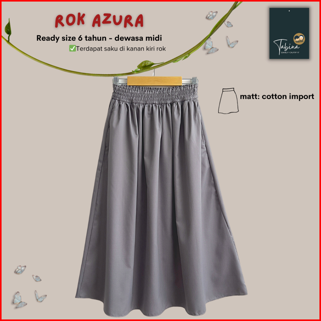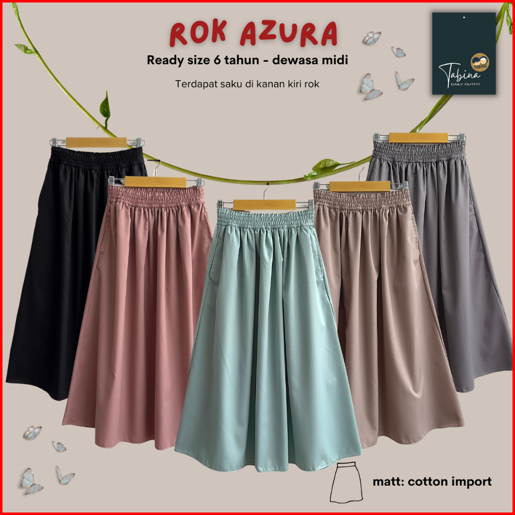 Tabina Rok Anak Dan Remaja Seri Azura Bahan Katun Toyobo Import Usia 6 Tahun - Midi Dewasa