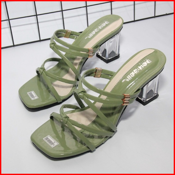 R10 Hells Wanita Dewasa Hak Kaca 7cm Ikat Sampul Tengah