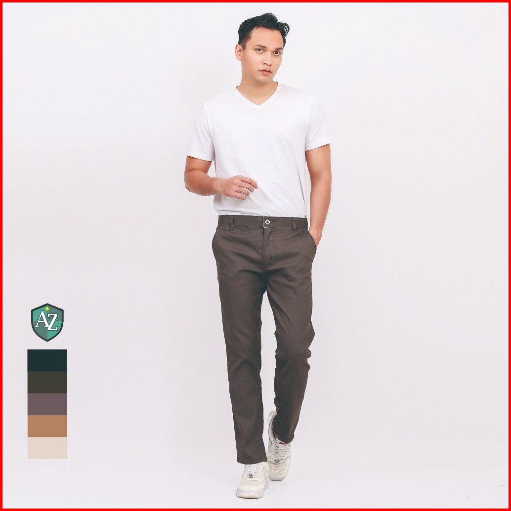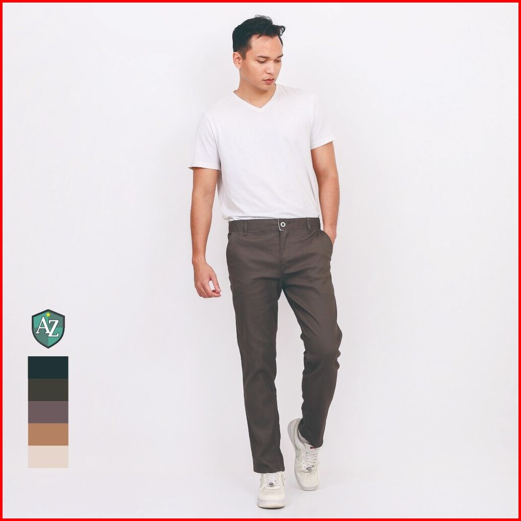 Arzanka - Celana Chino Chinos Panjang Gey Abu Polos Pria Slimfit