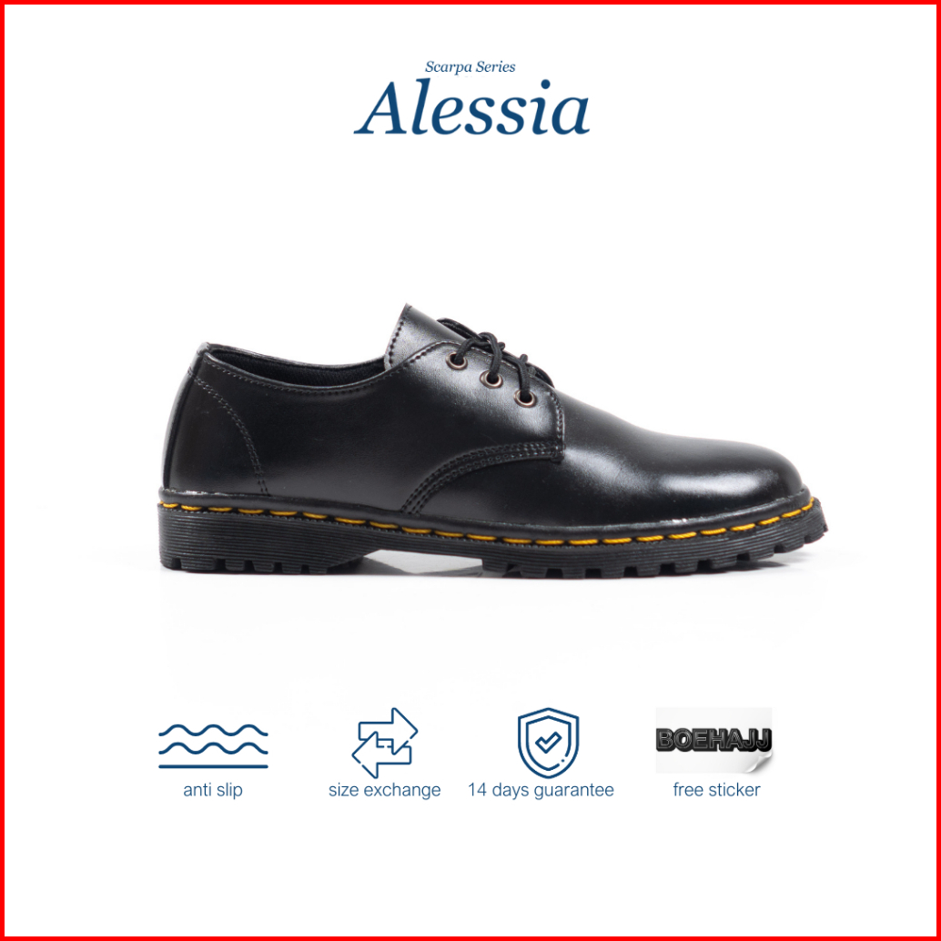 Boehajj - Alessia Sepatu Kerja Kuliah Derby Wanita Hitam Pantofel Kasual Formal