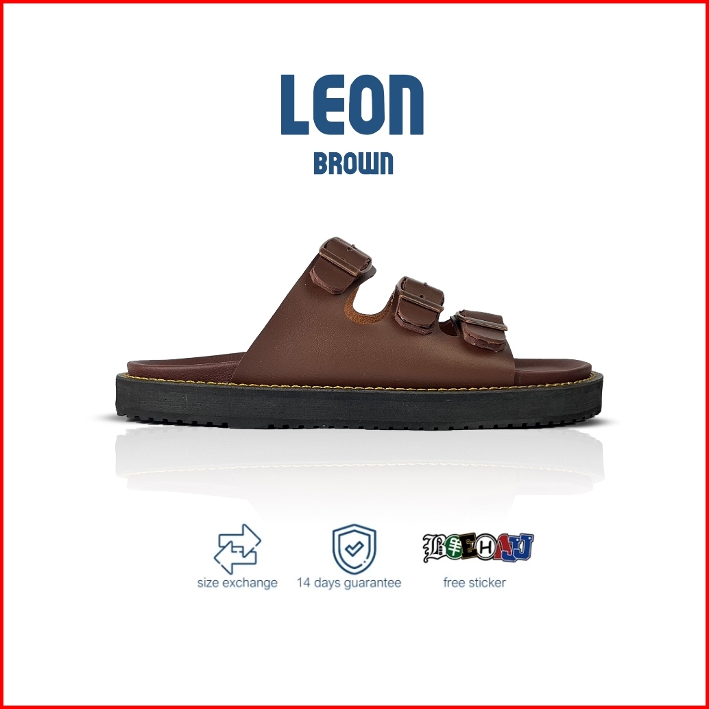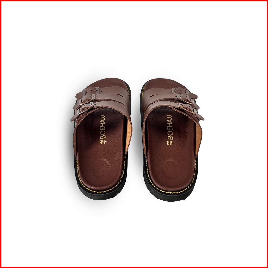 Boehajj Leon Brown - Sandal Kulit Slide Pria Wanita