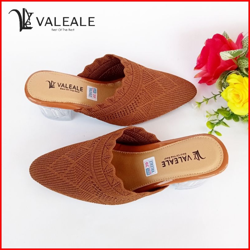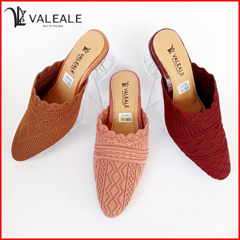 Sandal Wanita Hak Kaca 5 Cm Rajut Import Gelombang Calista Valeale Famore Motif Rajut Acak Highheels Kece Rajut Import K