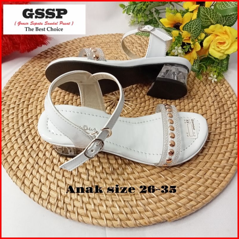Sandal Anak Perempuan Hak Kaca Tinggi 3 Cm Tali Belakang Sendal Pesta Anak Monica Size 26-35