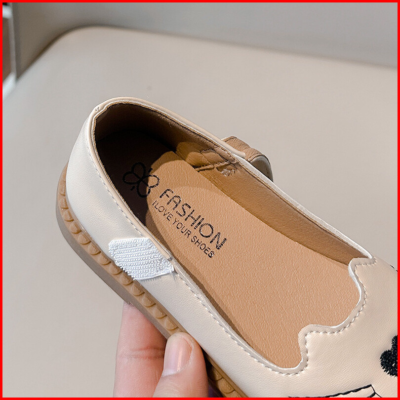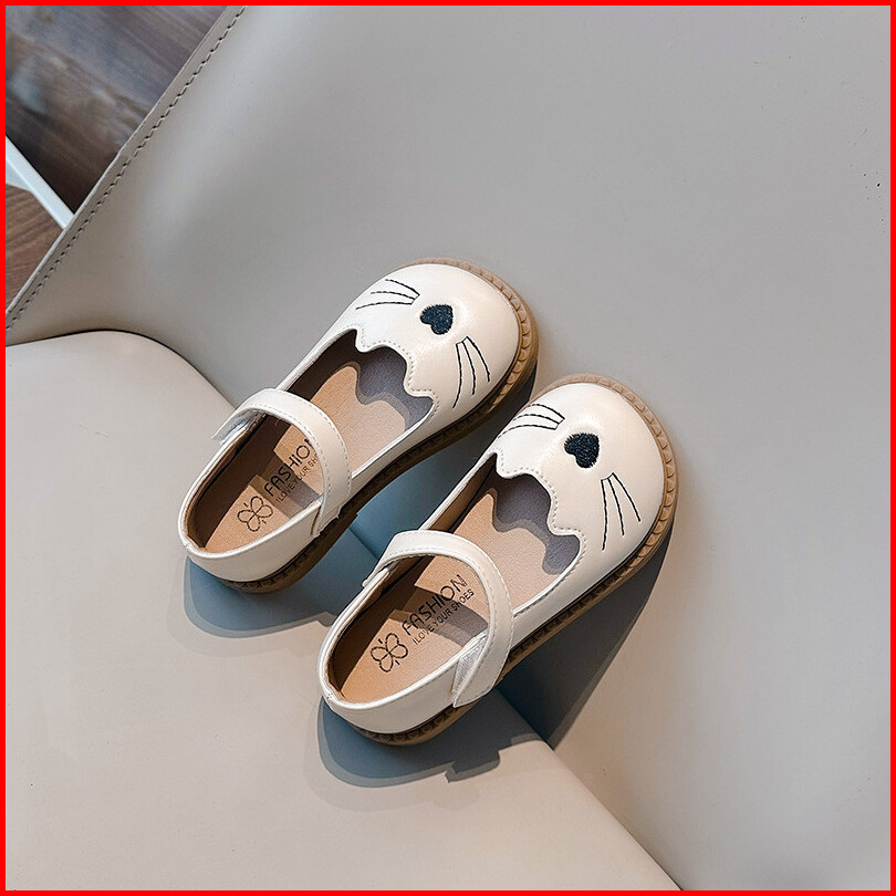 Sepatu Flat Kulit Bayi Perempuan Kucing Lucu Warna Solid Sederhana Nyaman Sol Lembut Sepatu Anak Ukuran 21-30