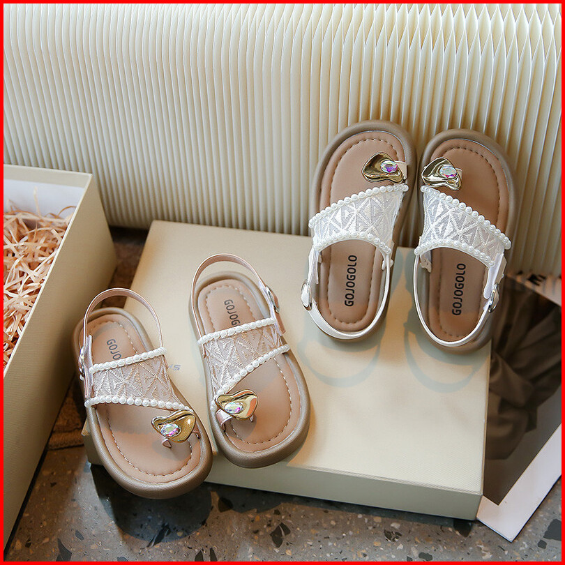 Sandal Ujung Terbuka Mutiara Berlian Hati Penuh Kasih Untuk Anak Perempuan Sepatu Anak-anak Nyaman Sol Lembut Bordir