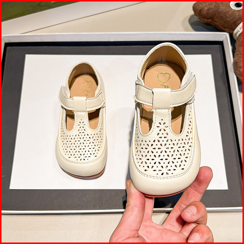 Sepatu Flat Kulit Berkualitas Tinggi Sederhana Untuk Bayi Perempuan Sepatu Anak Berongga Vintage Sol Lembut Anti Licin U