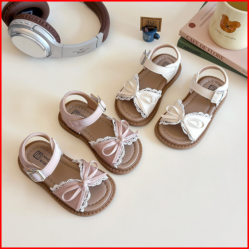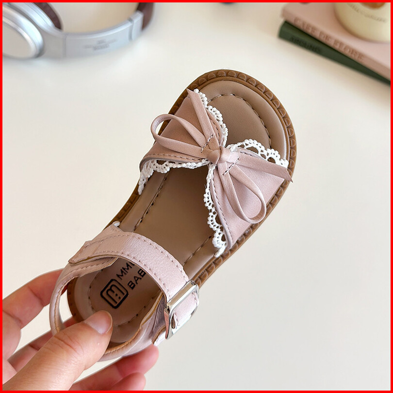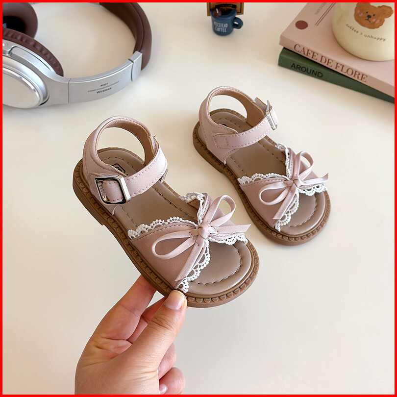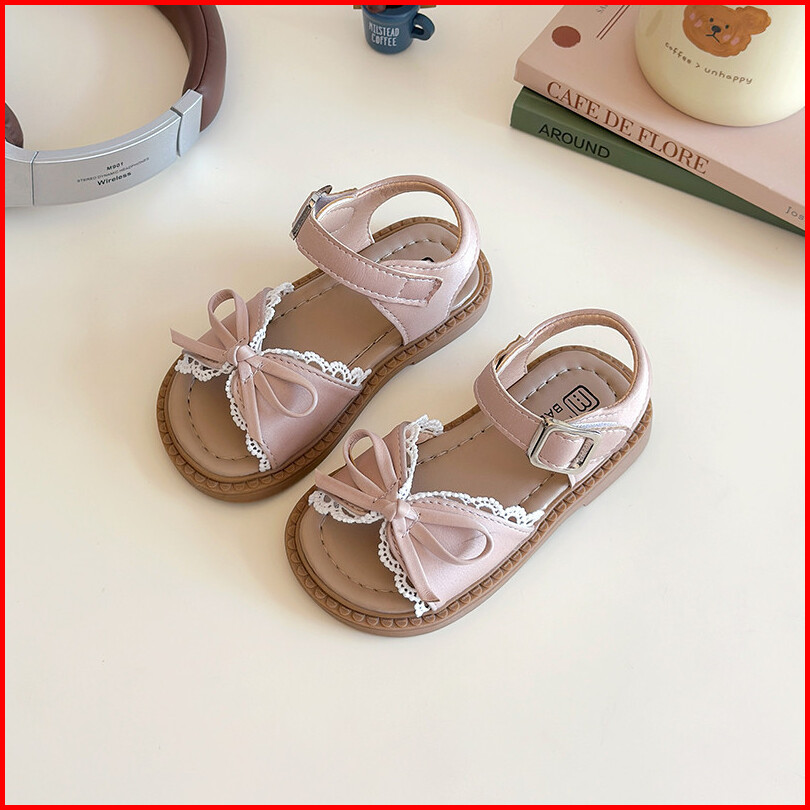 Sandal Kulit Renda Trendi Ujung Terbuka Untuk Bayi Perempuan Sepatu Anak-anak Nyaman Sol Lembut Pita Manis Ukuran 21-30