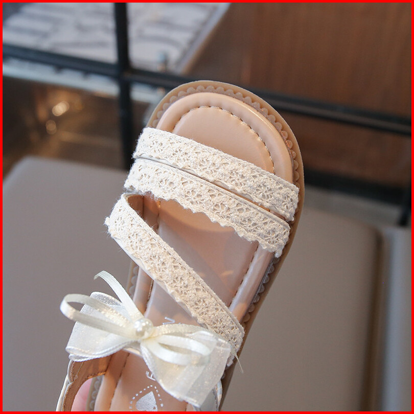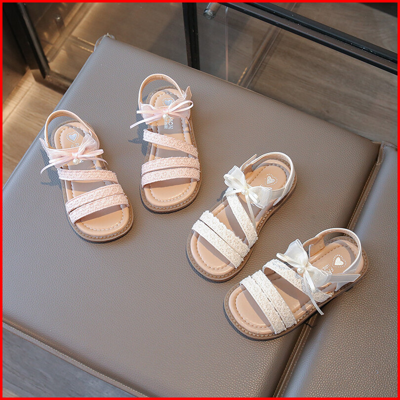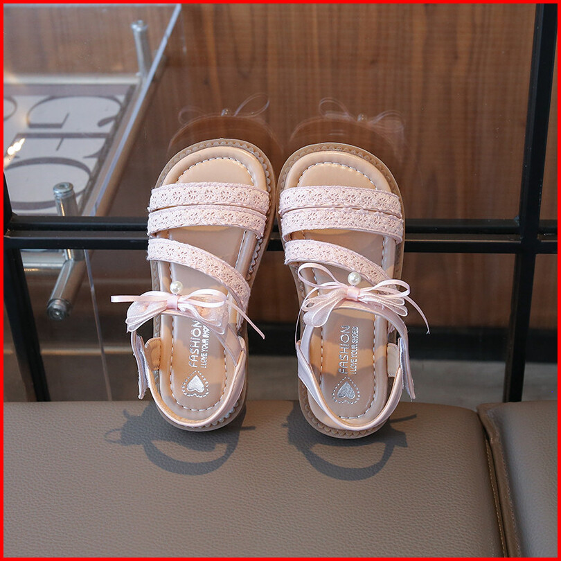 Sandal Kulit Ujung Terbuka Motif Pita Untuk Bayi Perempuan Sepatu Anak Sol Lembut Anti Licin Mutiara Trendi Ukuran 22-31