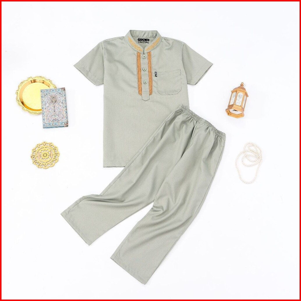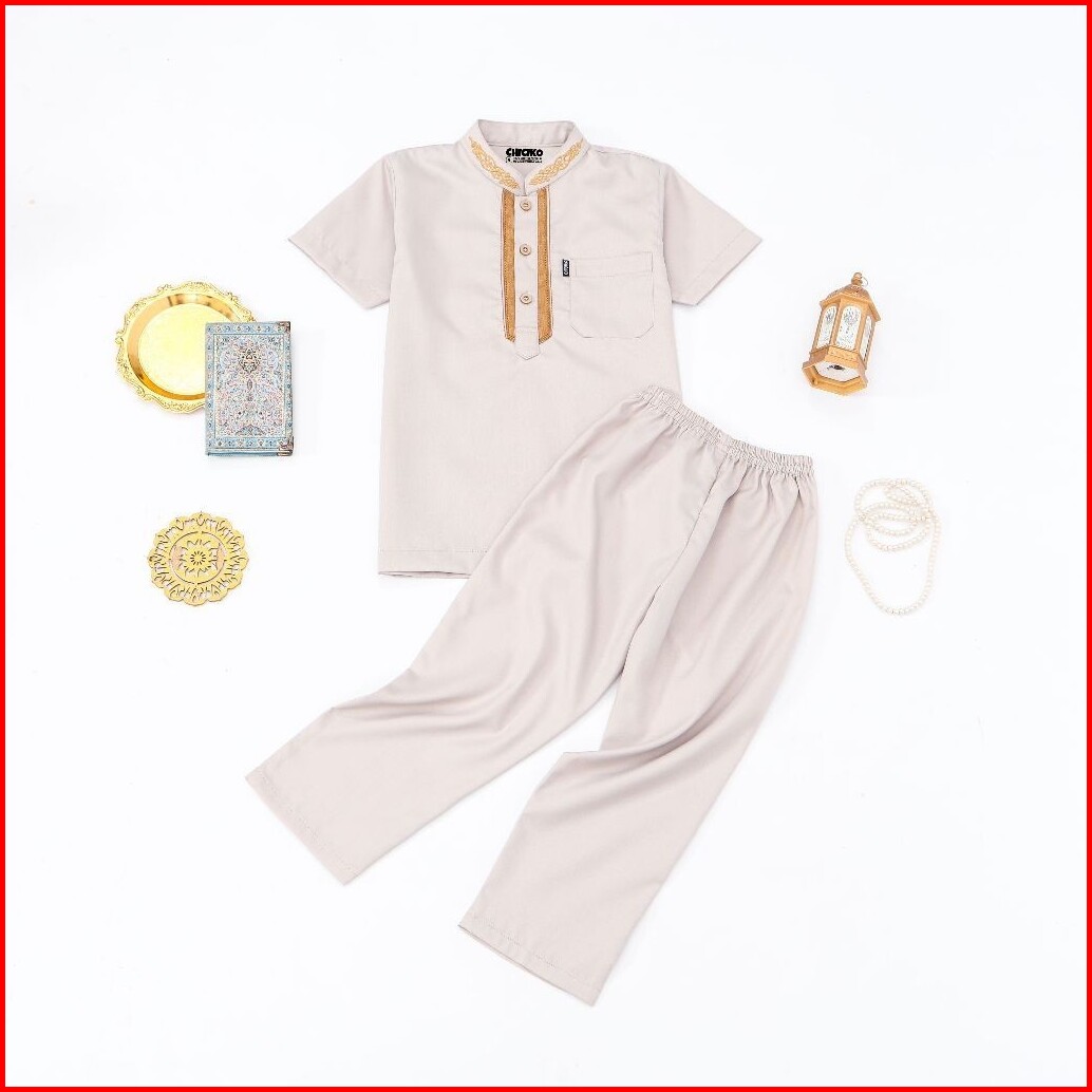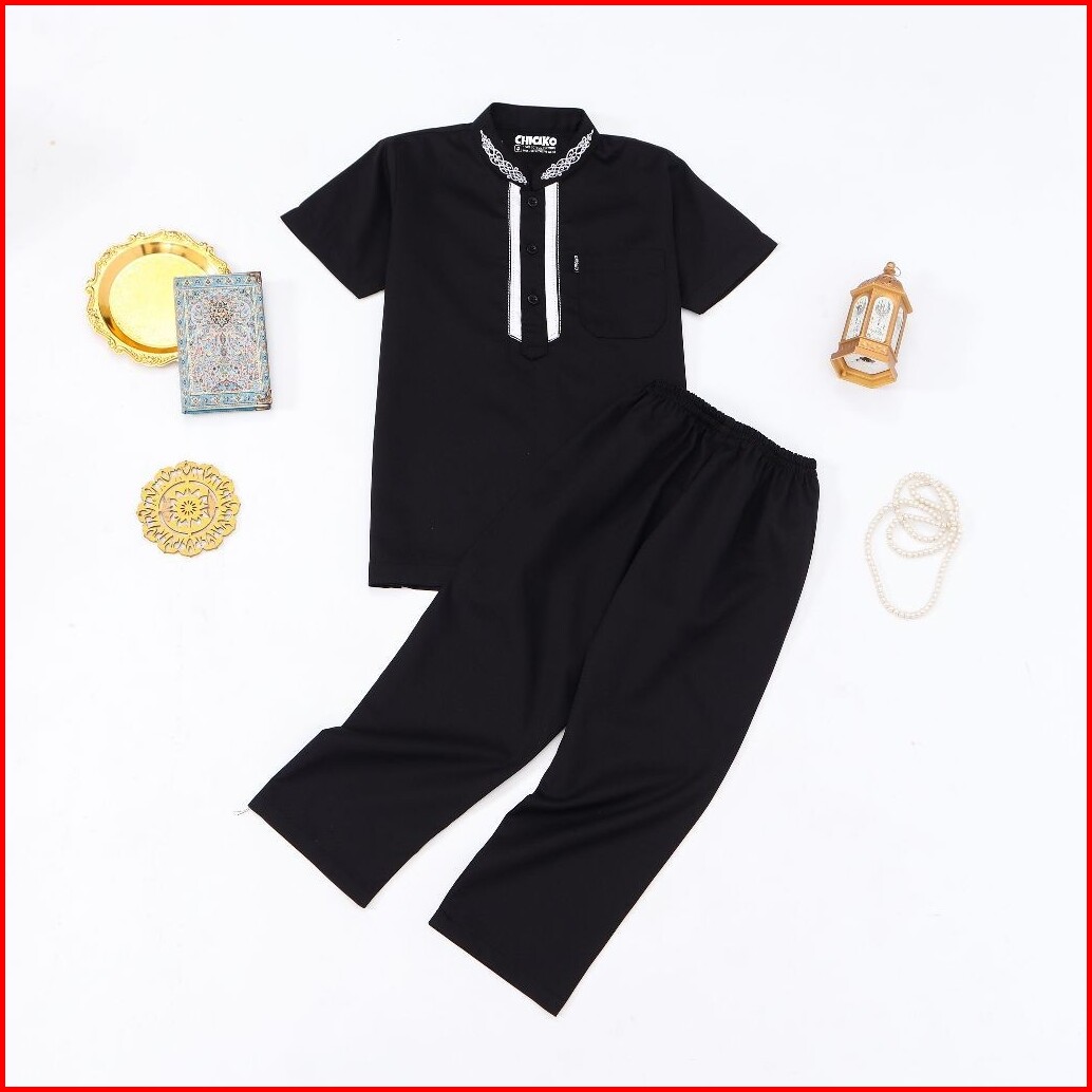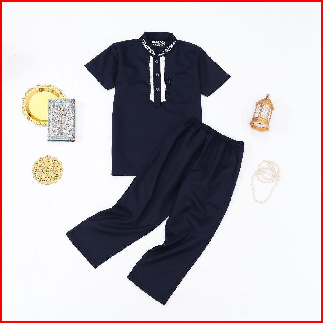 Chiciko - Setelan Koko Anak Laki-laki Full Bordir Lengan Pendek Usia 1-14 Tahun Bahan Toyobo Adem