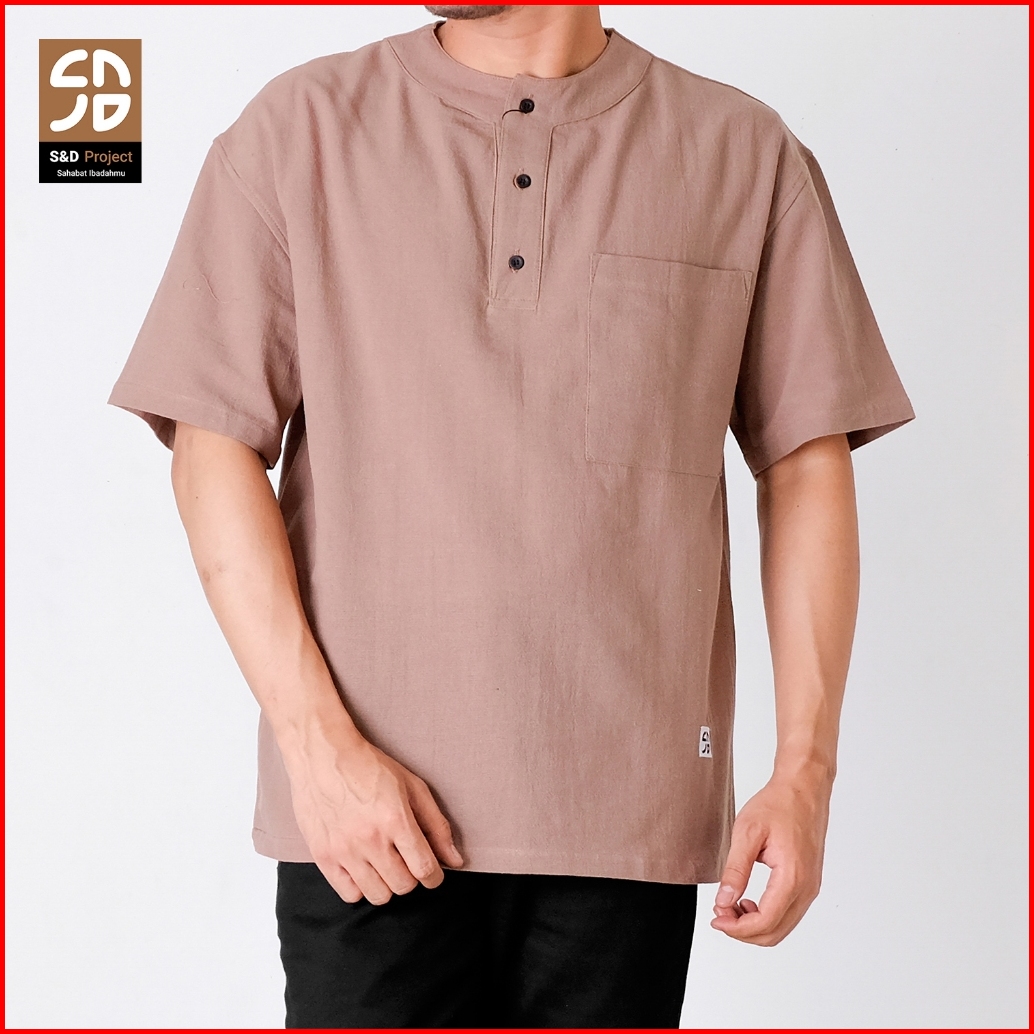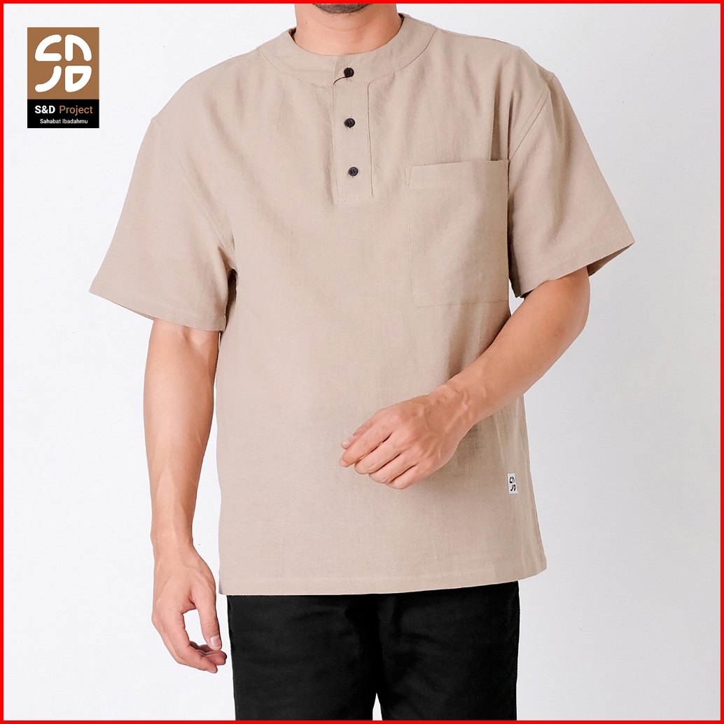 S D Project Baju Koko Muslim Maheer Bahan Linen Fumiko Premium Warna Beige M-xl Untuk Pria Dewasa Lengan Pendek Oversize