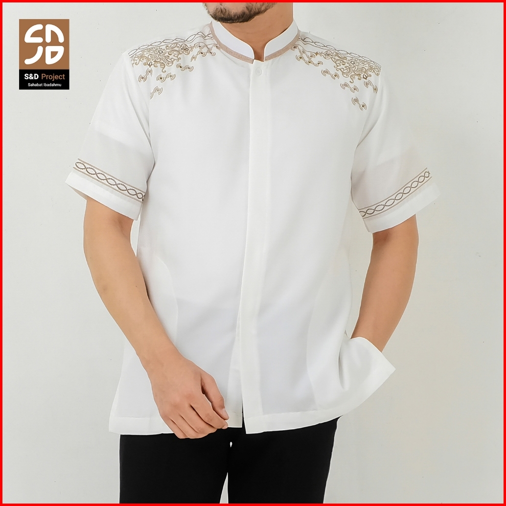 S D Project Baju Koko Muslim Seri 45 Bahan Polikatun Warna Putih Tulang Jumbo M-4xl Untuk Pria Dewasa Lengan Pendek Moti