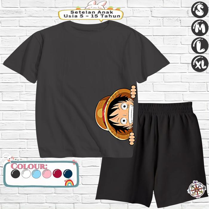Baju Setelan Anak Laki Laki - Pakaian Kaos Dan Celana Pendek Fashion Anak Cowok Usia 5-15 Tahun - Motif Luffy Japanese -