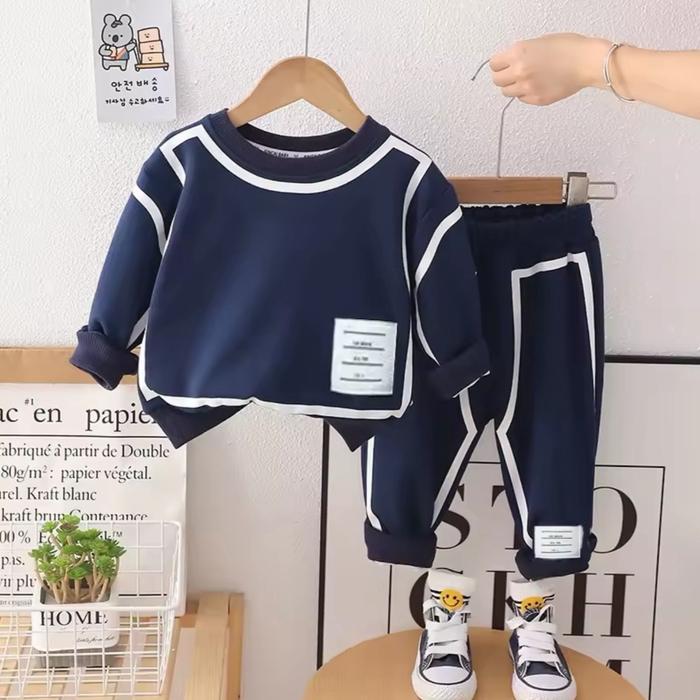 Setelan Celana Panjang Anak Laki-Laki 1-5 Tahun Katun Fleece Babyterry Terbaru - Fashion - Sw Pola Abu, 1Tahun