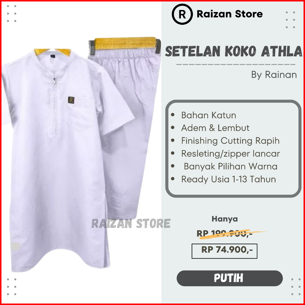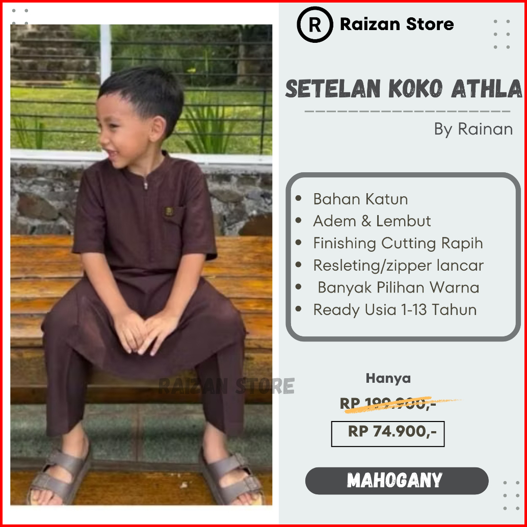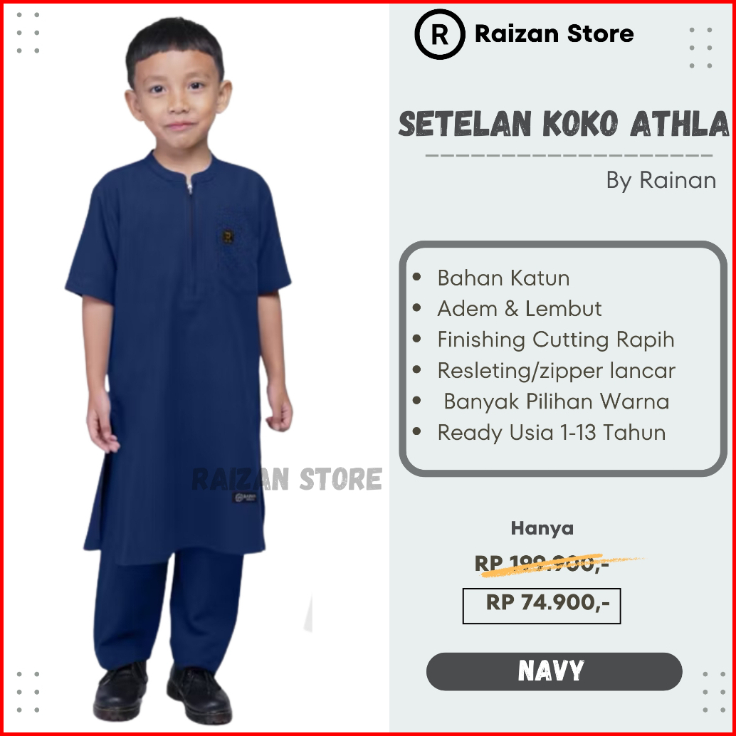 Raizan Store Baju Koko Anak Laki -laki Setelan Athla By Rainan Ori Bahan Adem Lembut Usia 1-13 Tahun