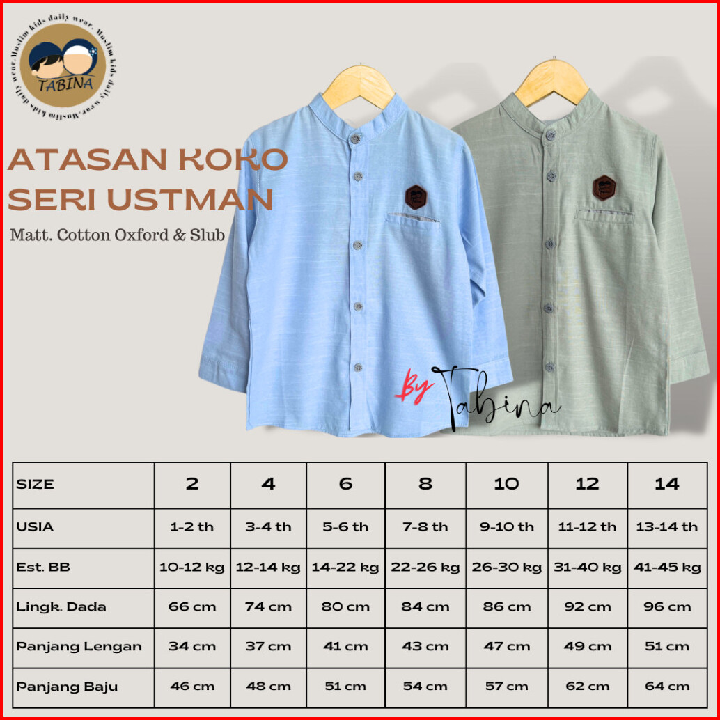 Tabina Kemeja Anak Laki Laki - Remaja Lengan Panjang Seri Ustman Usia 2 Tahun Sampai 14 Tahun