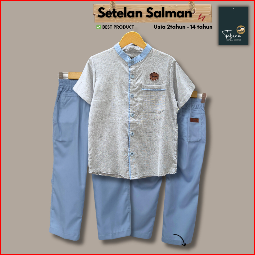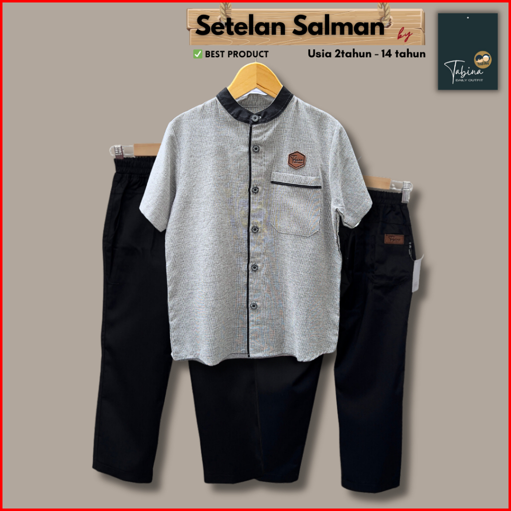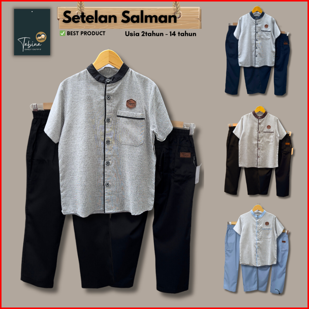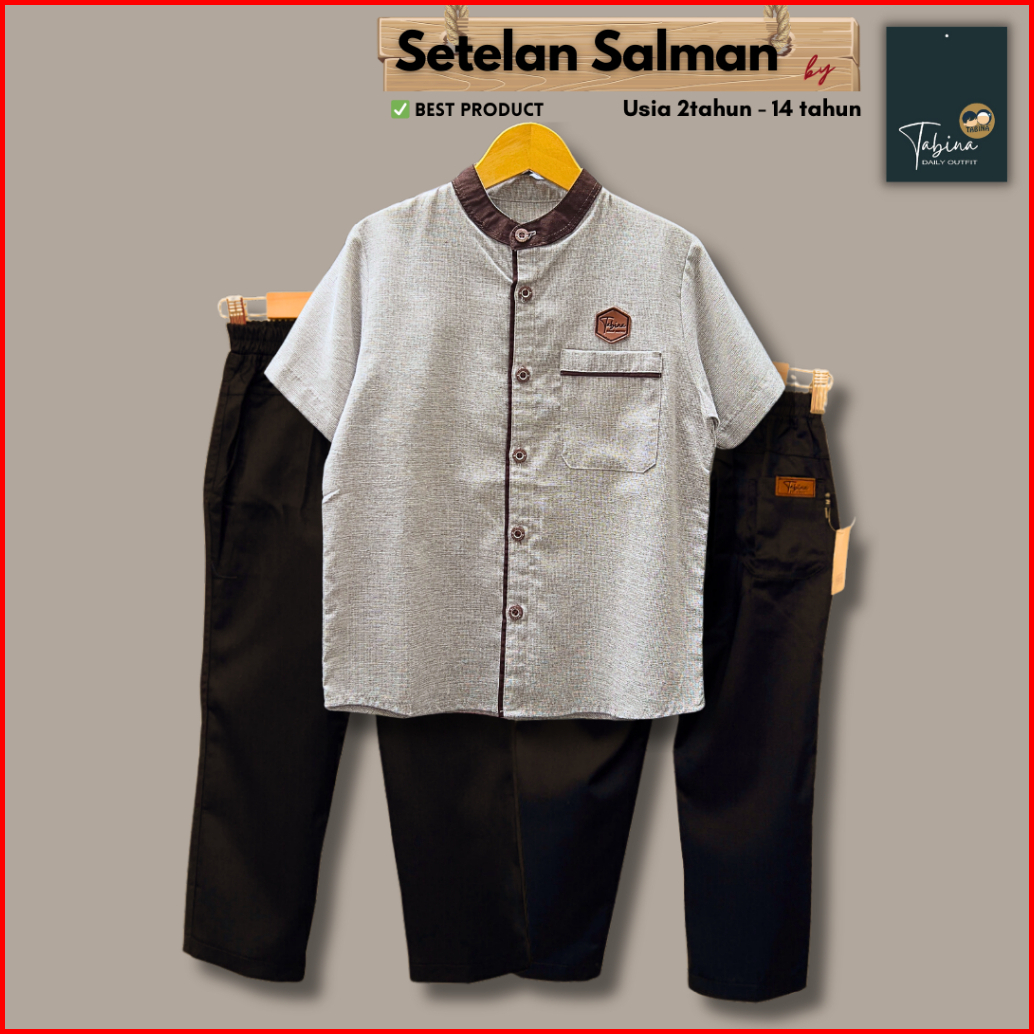 Tabina Setelan Kemeja Koko Lengan Pendek Seri Salman Usia 2 Hingga 14 Tahun Remaja