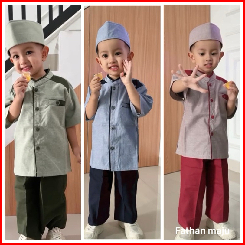 Baju Koko Setelan Anak Laki Laki 3-12 Tahun Pakaian Muslim Anak Cowok Terbaru