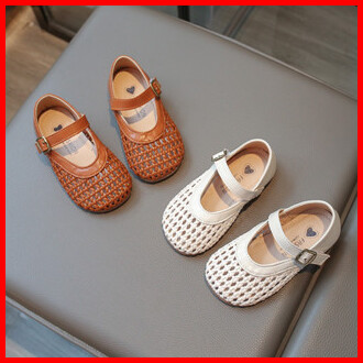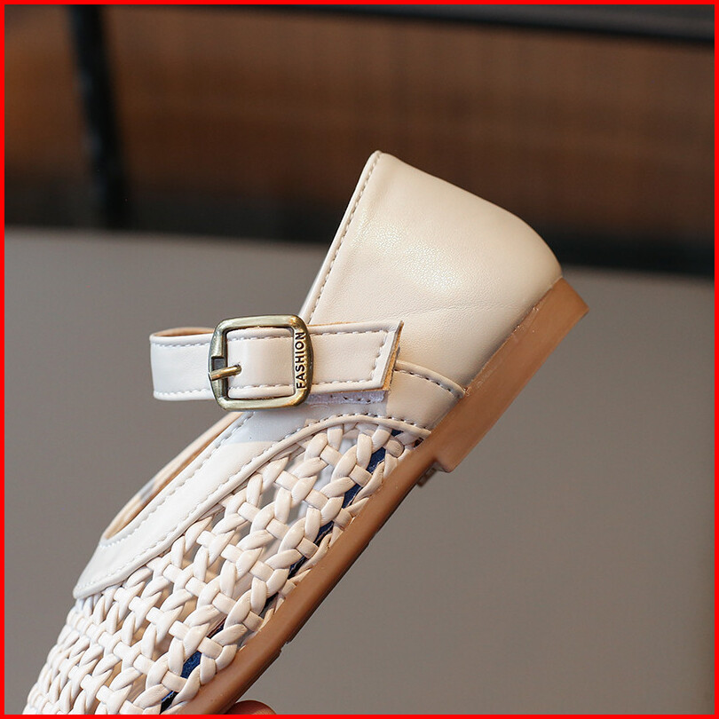 Sandal Anti Tabrakan Sederhana Bergaya Untuk Bayi Perempuan Sepatu Anak Sol Lembut Kait Lingkaran Berongga Tenun Ukuran
