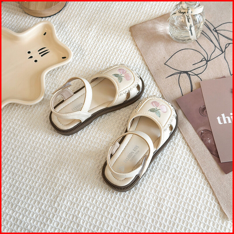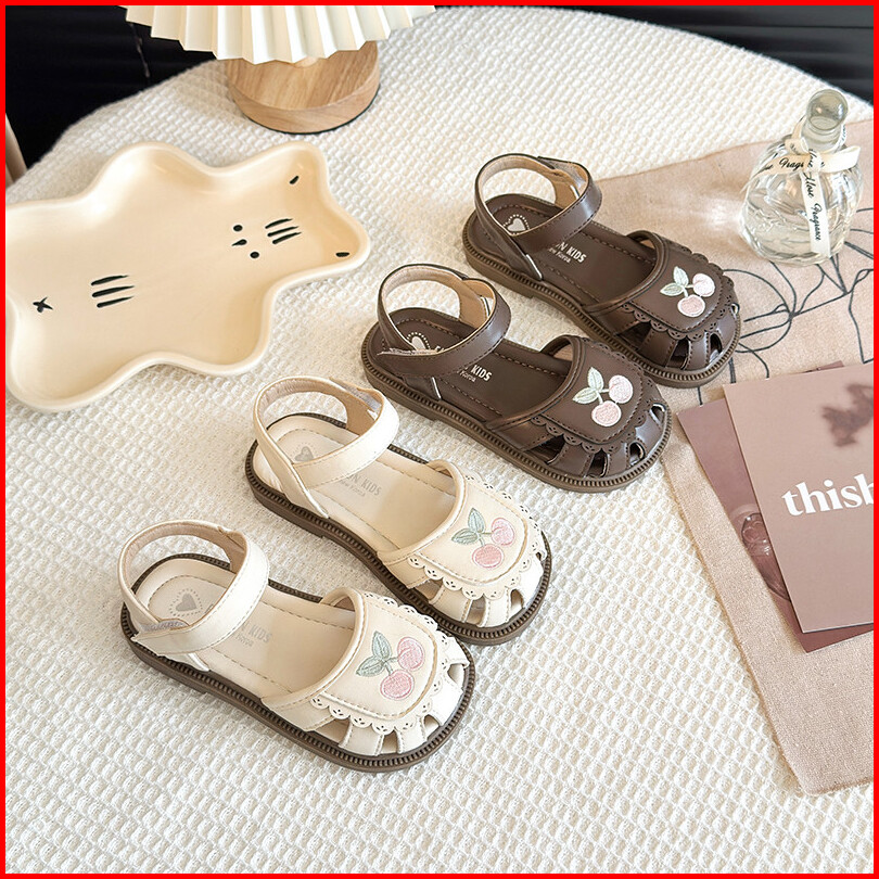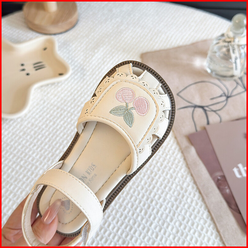 Sandal Kulit Bayi Perempuan Bordir Bunga Sakura Anti-tabrakan Sol Lembut Nyaman Sepatu Anak Ukuran 21-30