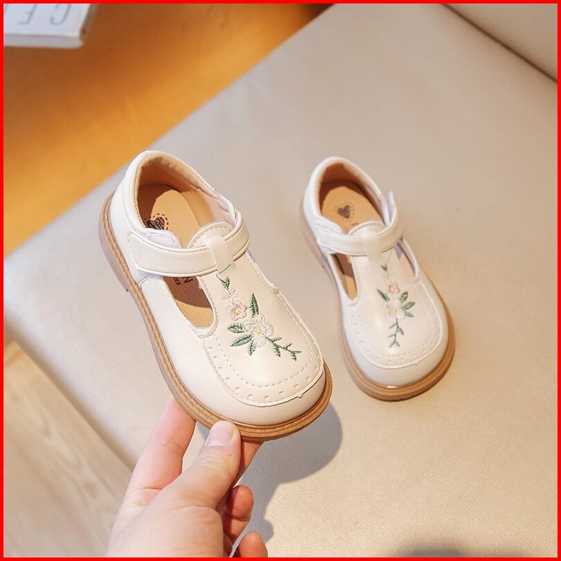 Bunga Bayi Perempuan Sepatu Datar Kulit Paten Mengkilap Gaya Korea Sepatu Anak Ujung Bulat Sederhana Antilicin Ukuran 21