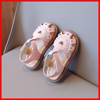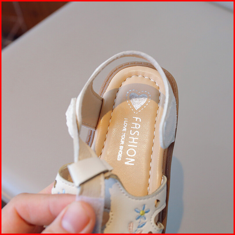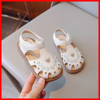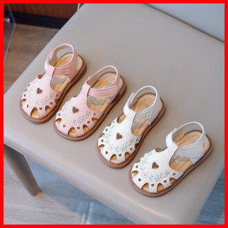 Sandal Kulit Bayi Perempuan Motif Bunga Bordir Hati Berongga Dan Indah Sepatu Anak Anti-tabrakan Ukuran 22-31