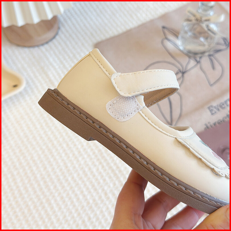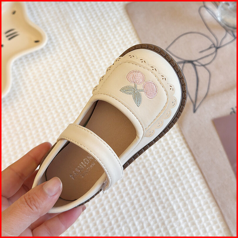 Sepatu Flat Kulit Bayi Perempuan Berenda Cantik Bordir Ceri Sol Lembut Sepatu Anak-anak Nyaman Ukuran 21-30