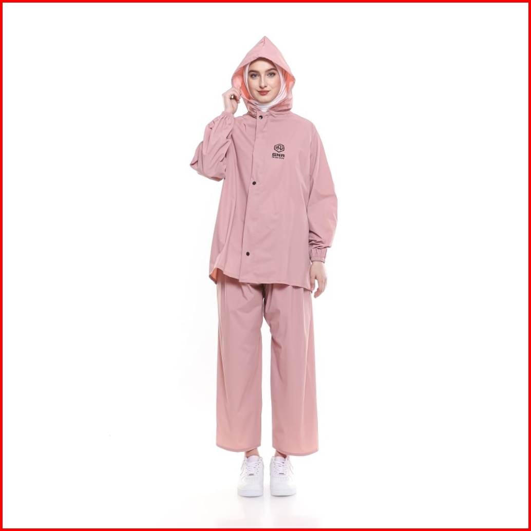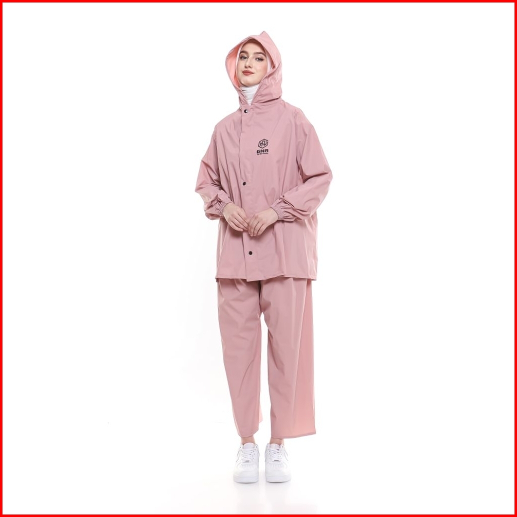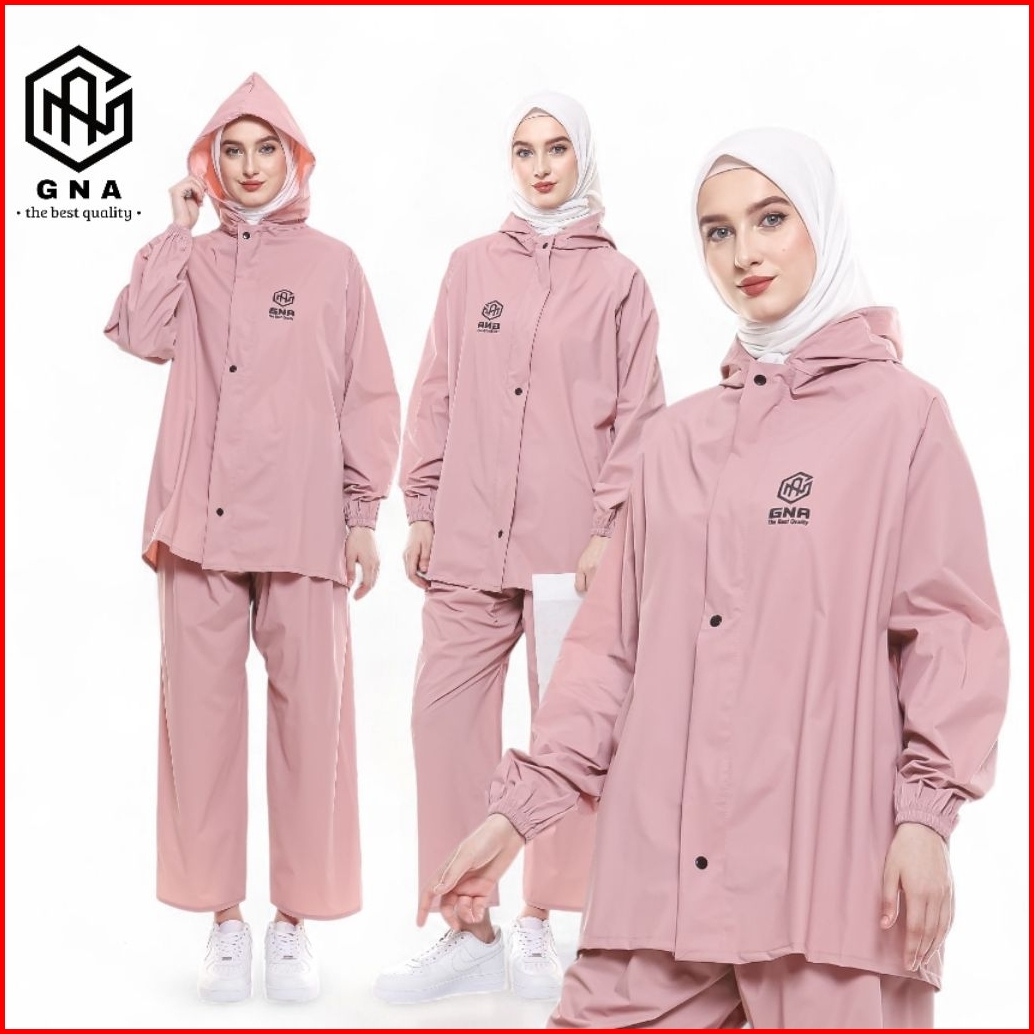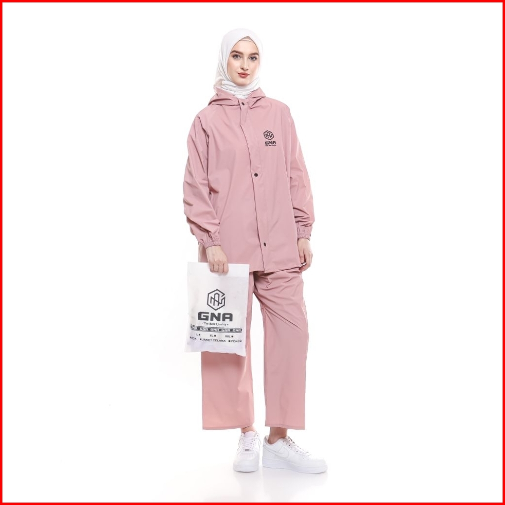 Gna Jas Hujan Dusty Pink Seris Warna Nude Wanita Tebal Premium