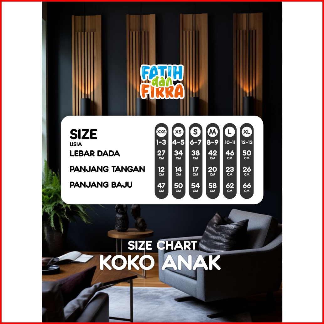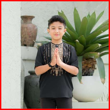 Fatih Dan Firra Atasan Koko Anak Noir Hitam Border Premium Sarimbit