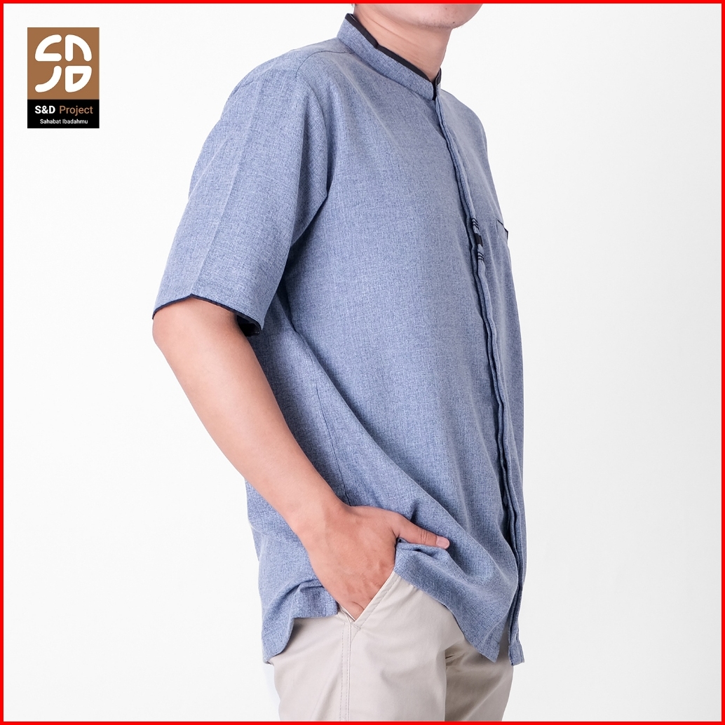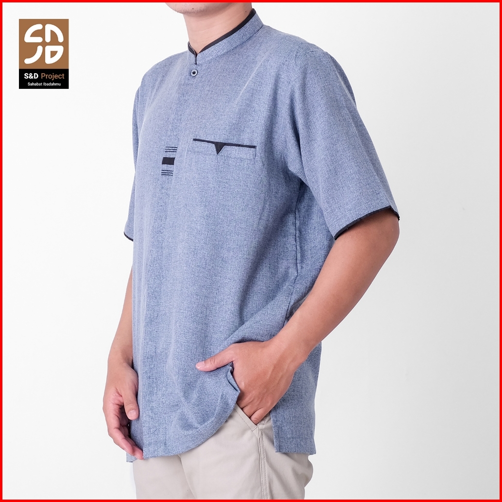 S D Project Baju Koko Muslim Bahan Madinah Warna Denim M-xl Untuk Pria Dewasa Lengan Panjang