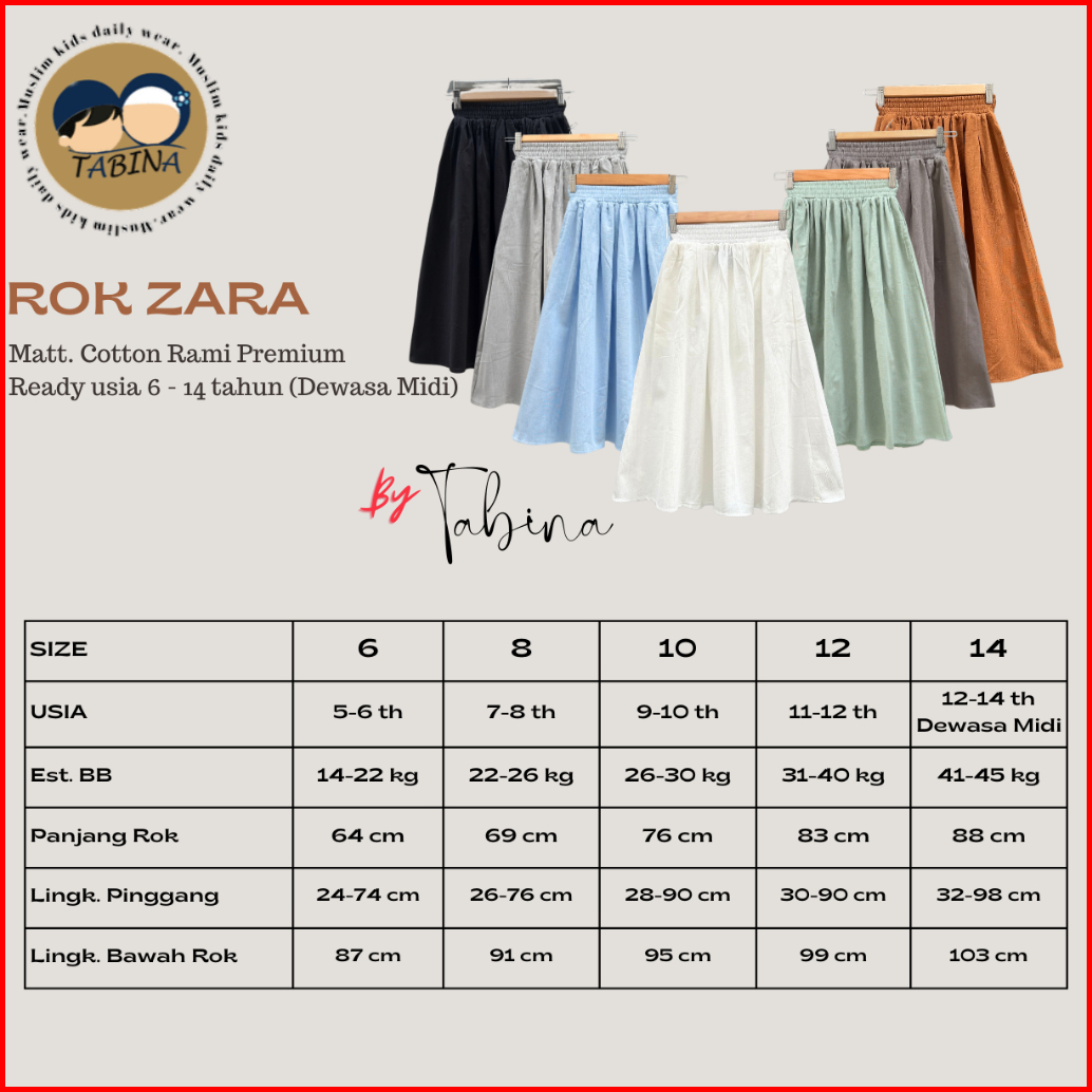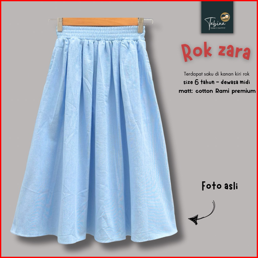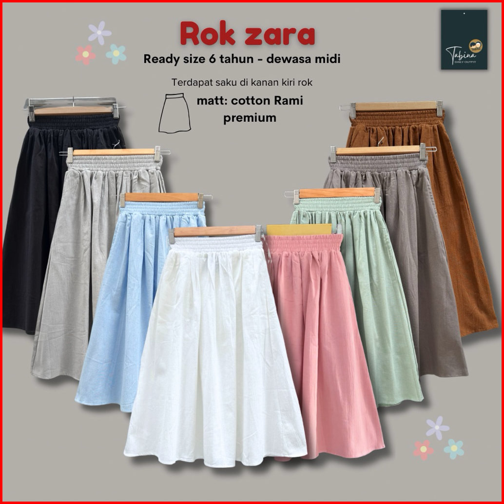 Tabina Rok Anak Perempuan Hingga Dewasa Midi Seri Zaraa Bahan Katun Rami Usia 5 Tahun Hingga Dewasa